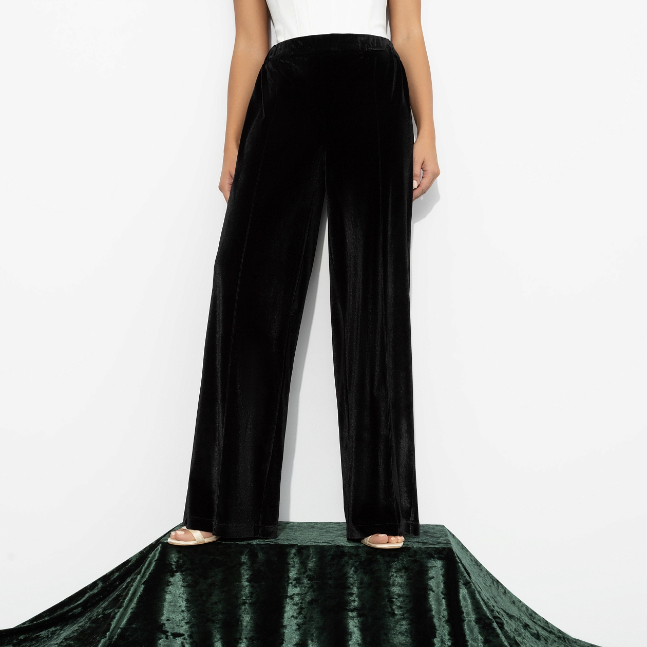 Иногда, чтобы вернуть себе ресурс, достаточно просто надеть то, что приятно телу. Брюки из бархата-стрейч – стильный способ восстановить силы и уверенность. Брюки мягко драпируются, играя бликами при каждом движении. Свободный крой и высокая посадка создают безупречный силуэт и ощущение внутреннего равновесия. Брюки на резинке.