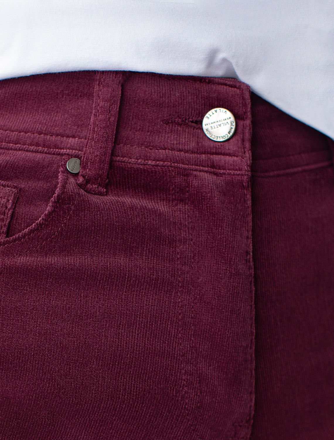 Брюки выполнены из мягкого хлопкового микро-вельвета с добавлением эластана. Изделие комфортно садится по фигуре и не сковывает движения. Модель с пятью карманами, как у джинсов-скинни дополнена высококачественной фурнитурой с фирменным логотипом бренда. Хорошо комбинируется с вязаным трикотажем, блузками и денимом. Как альтернатива брюкам, в нестрогий офисный дресс-код.