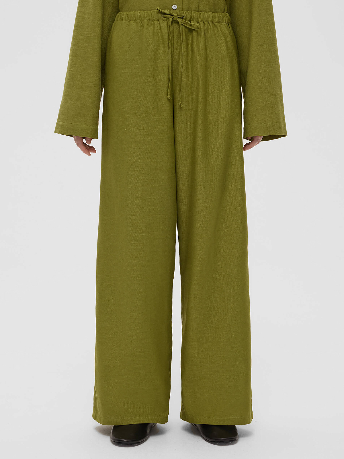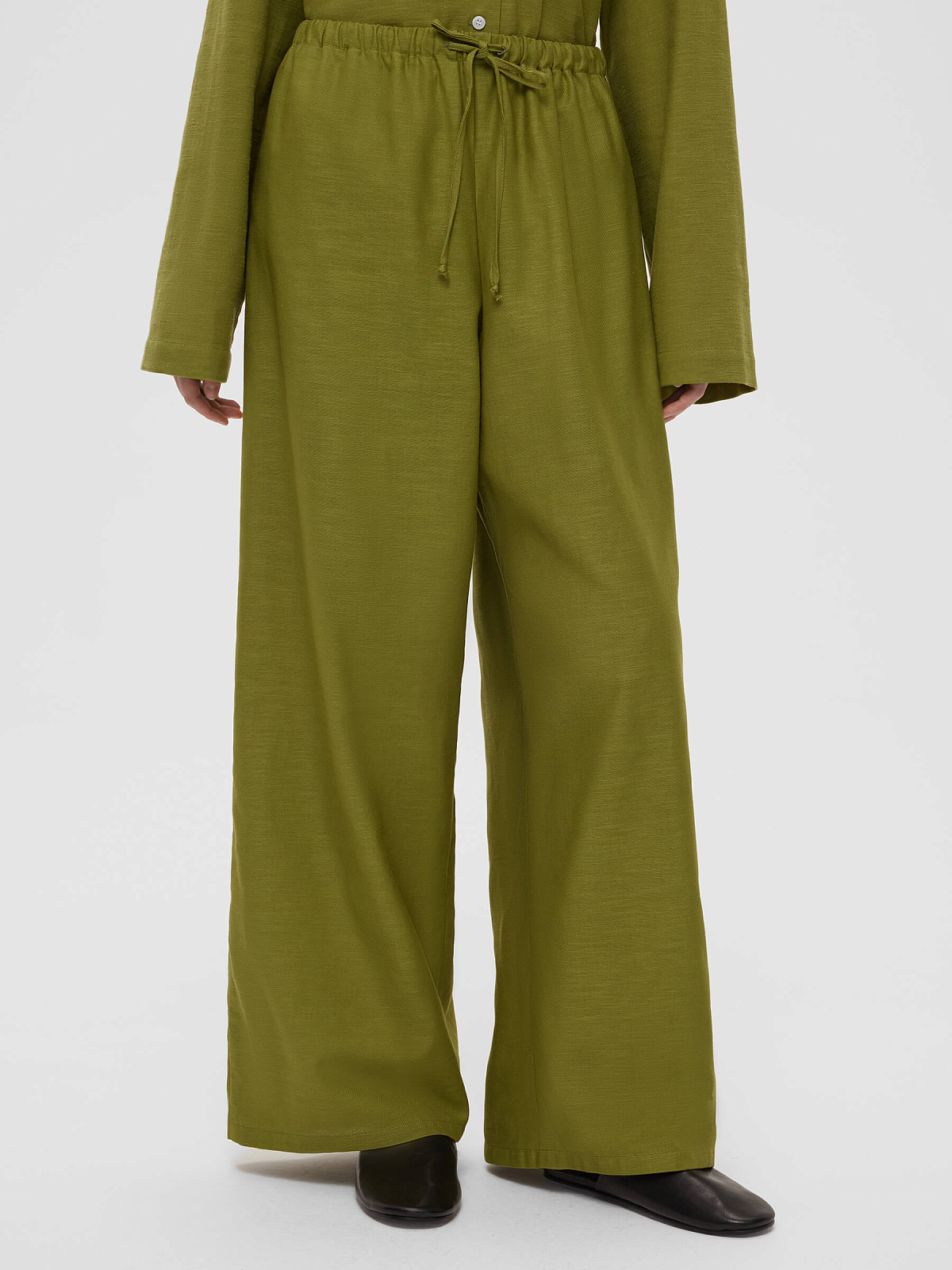 Брюки из льняной ткани на резинке 0178, зеленый