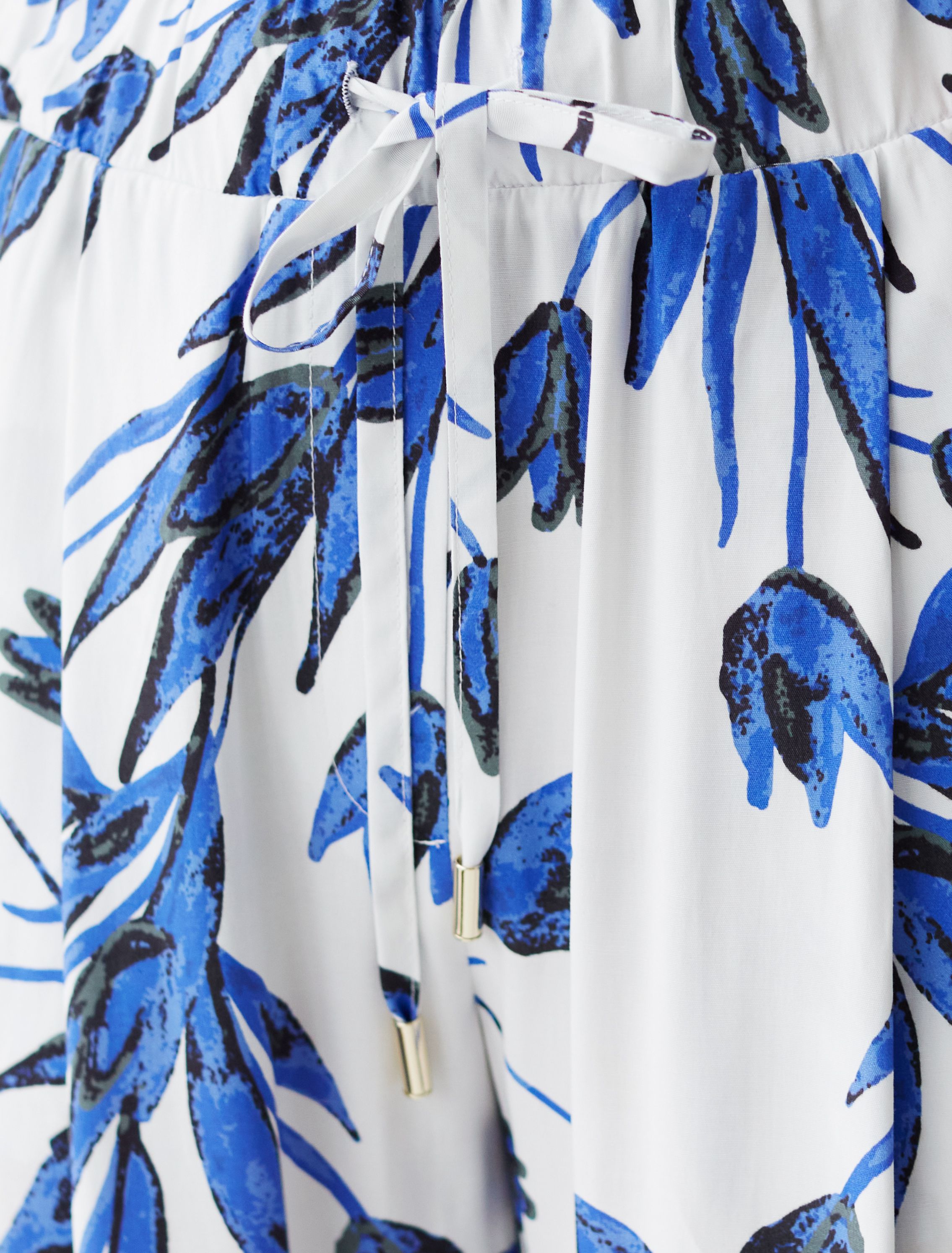 Брюки выполнены из вискозы с лиоцеллом. Изделие дополнено эластичным поясом с регулируемым шнуром. Ткань изящно блестит и приятно охлаждает кожу в жаркое время года. Модель сечетается в костюме с топом D23.062 и блузкой D29.263