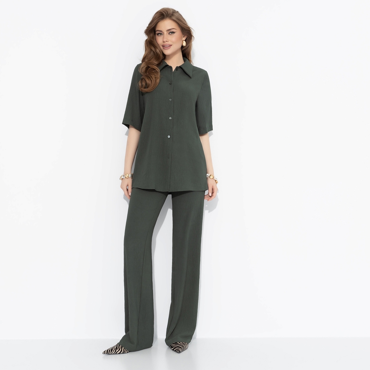 Доброе утро начинается с кружки матчи на кокосовом молоке, легкой лимфодренажной зарядки и планирования отпуска. Если что-то может быть лучше, так это выход из дома в комфортных брюках CHARUTTI в дорогом зеленом цвете. Брюки прямые. Посадка регулируемая. Пояс оформлен тонкими шнурками в тон изделия. Есть карманы. Невероятно комфортно!