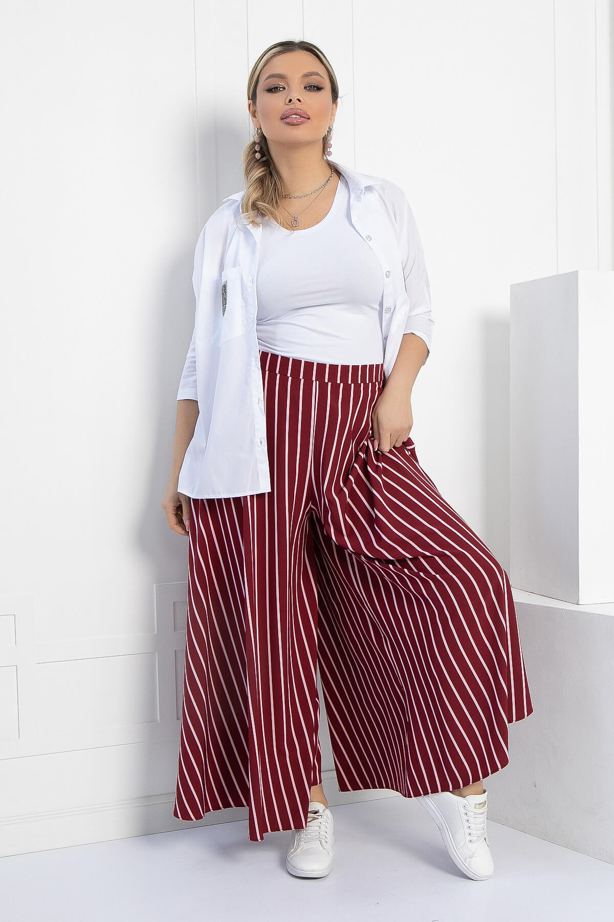 Оригинальные и стильные юбка-брюки для эффектного появления. Такая модель брюк идеальна для женщин любого возраста. Струящаяся ткань брюк визуально вытягивает и стройнит фигуру. Также брюки-юбка в сочетании с блузой, топом или водолазкой подойдут для повседневной носки и прогулок, а если надеть под них обувь на каблуке, то брюки превращаются в неотъемлемую часть вечернего образа. Брюки оснащены потайной молнией по боковому шву.