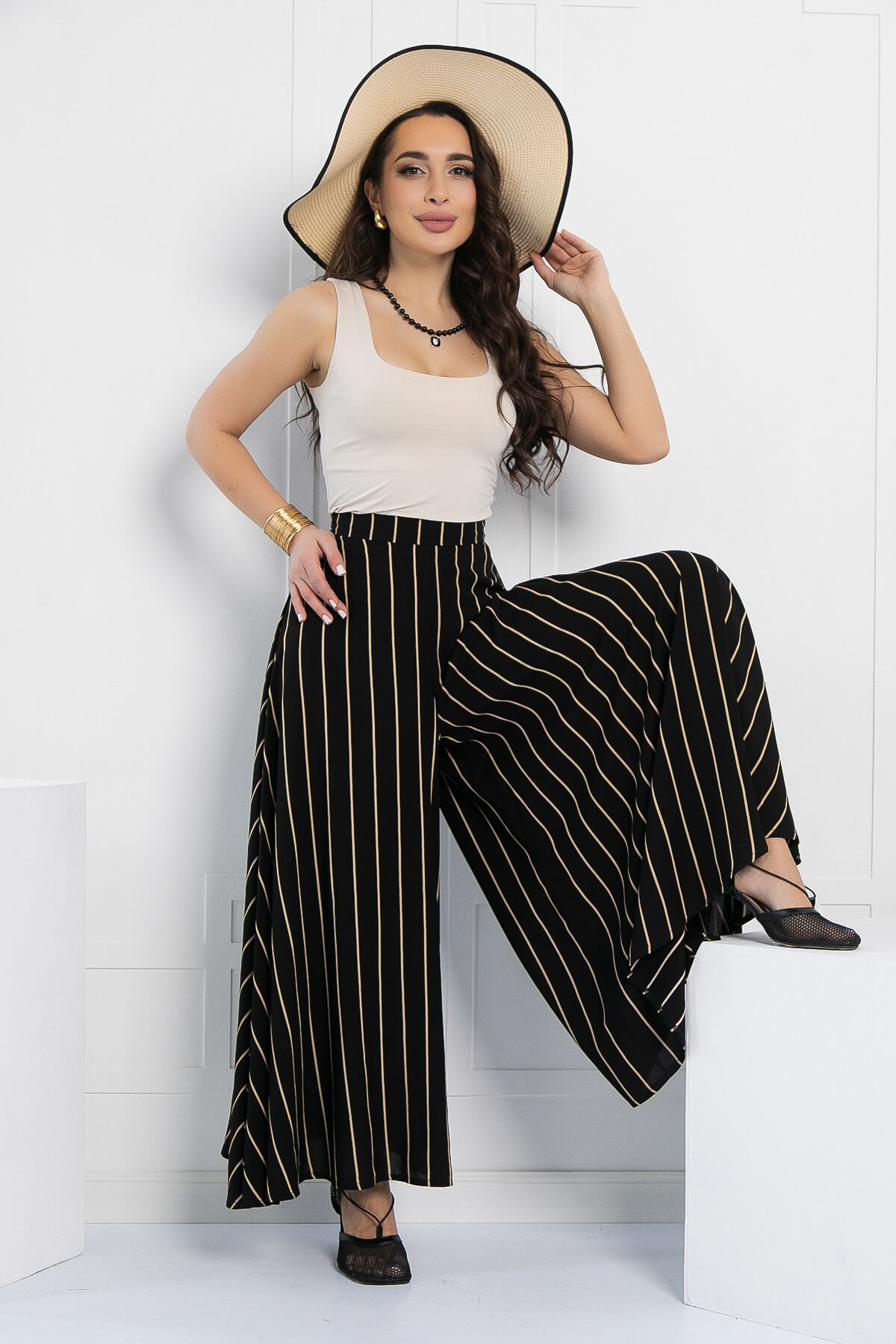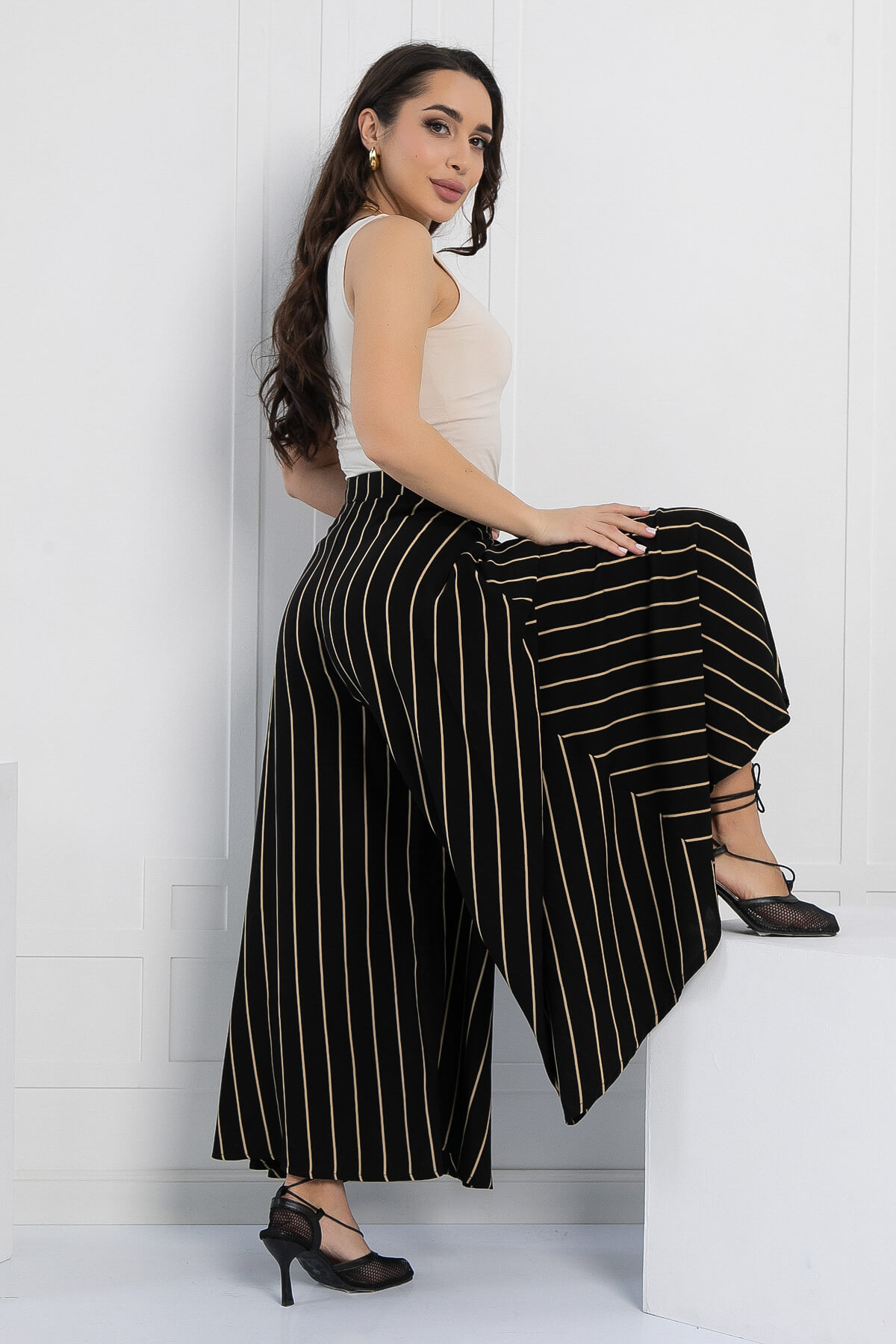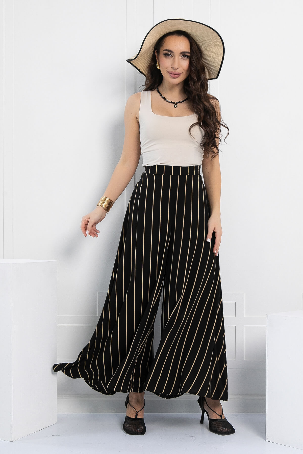 Оригинальные и стильные юбка-брюки для эффектного появления. Такая модель брюк идеальна для женщин любого возраста. Струящаяся ткань брюк визуально вытягивает и стройнит фигуру. Также брюки-юбка в сочетании с блузой, топом или водолазкой подойдут для повседневной носки и прогулок, а если надеть под них обувь на каблуке, то брюки превращаются в неотъемлемую часть вечернего образа. Брюки оснащены потайной молнией по боковому шву.