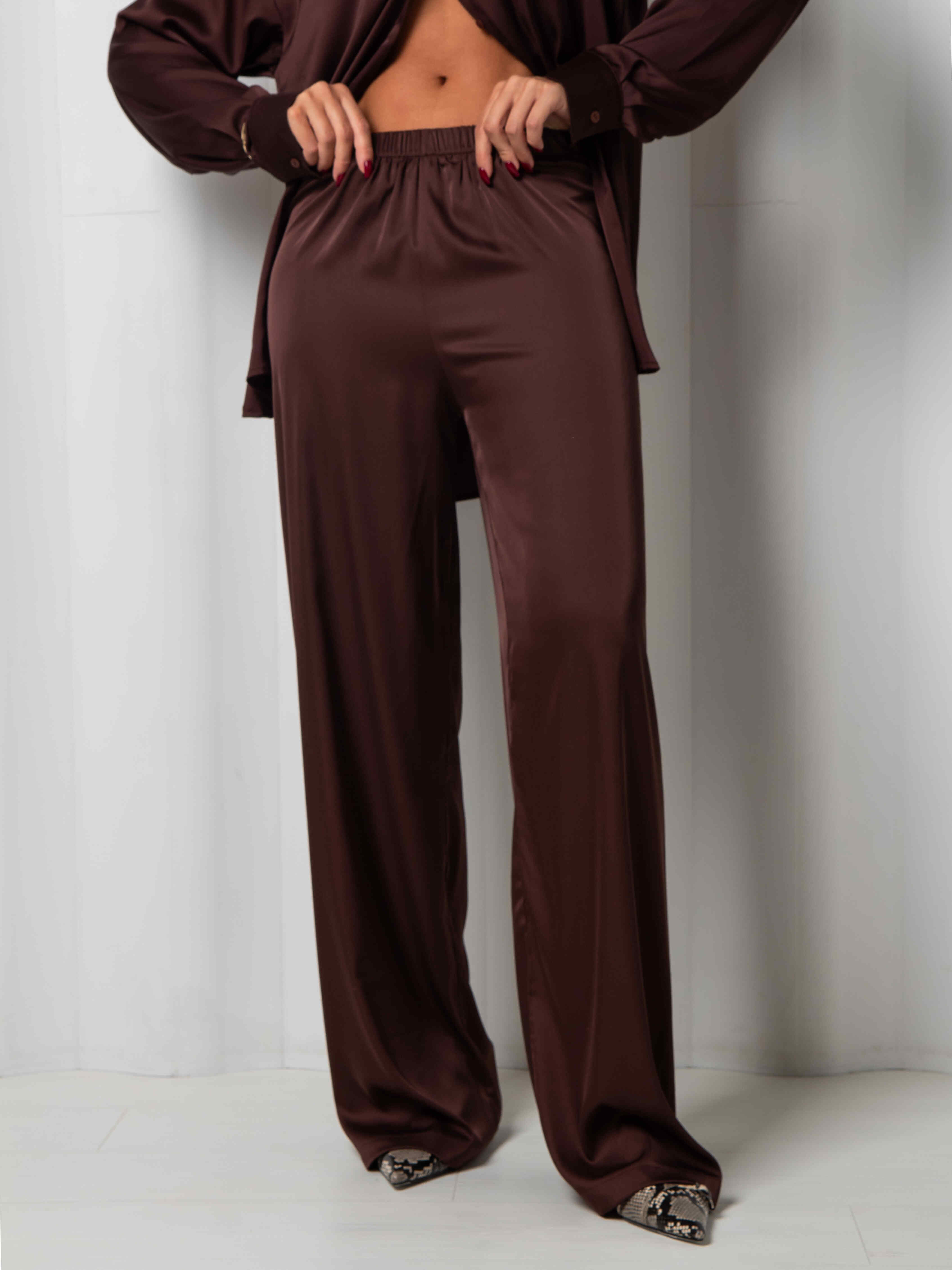 Шелковые брюки Камелия воплощают в себе шик и утонченную элегантность, придавая вашему стилю непринужденную изысканность. Широкий, свободно струящийся крой и эластичный пояс позволяют брюкам мягко облегать фигуру, создавая изящный и комфортный силуэт.