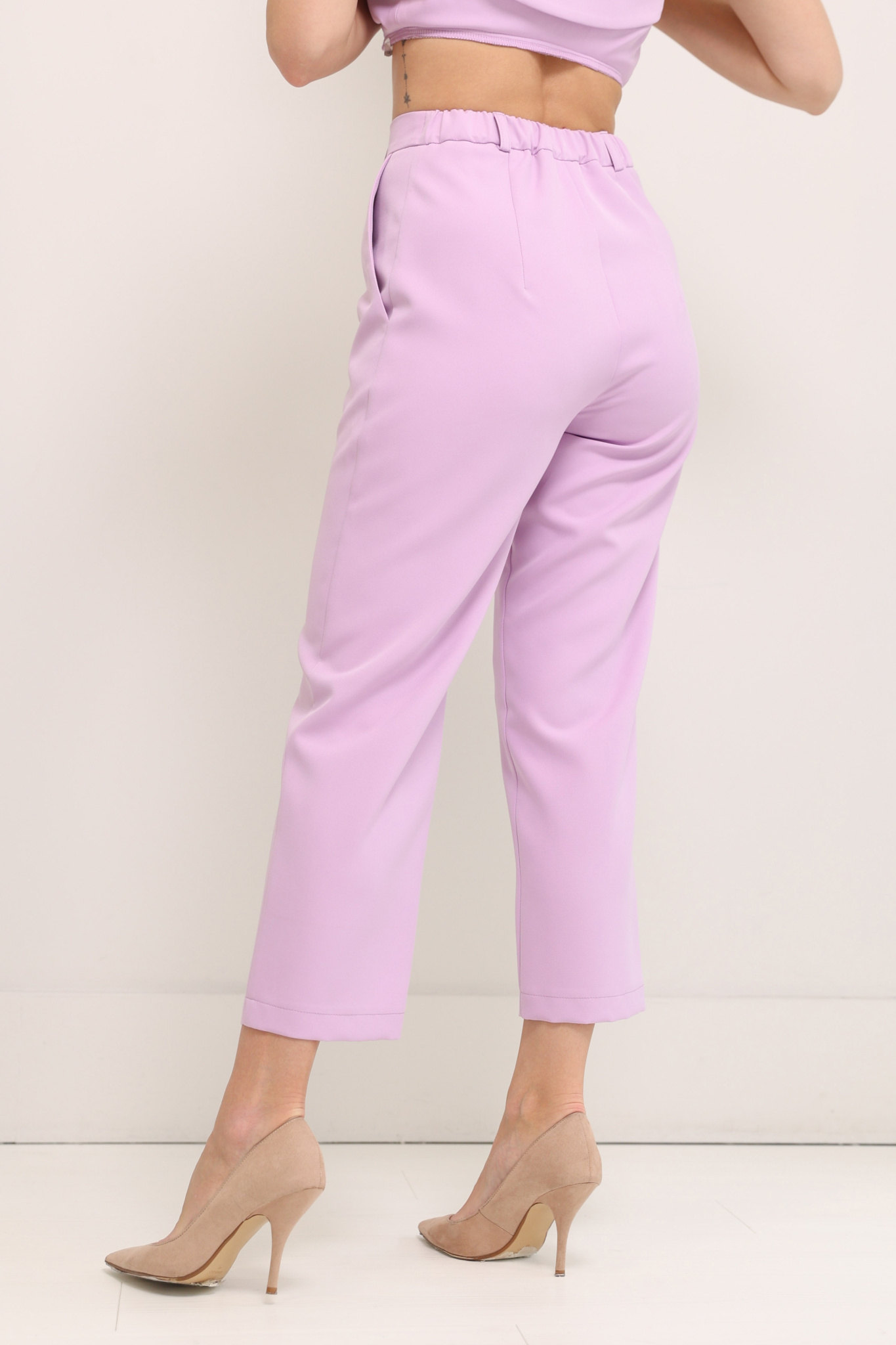 Брюки- капри прямого кроя. Приточной пояс с резинкой со стороны спинки. Карманы в боковых швах. Застежка на молнию и пуговицу.