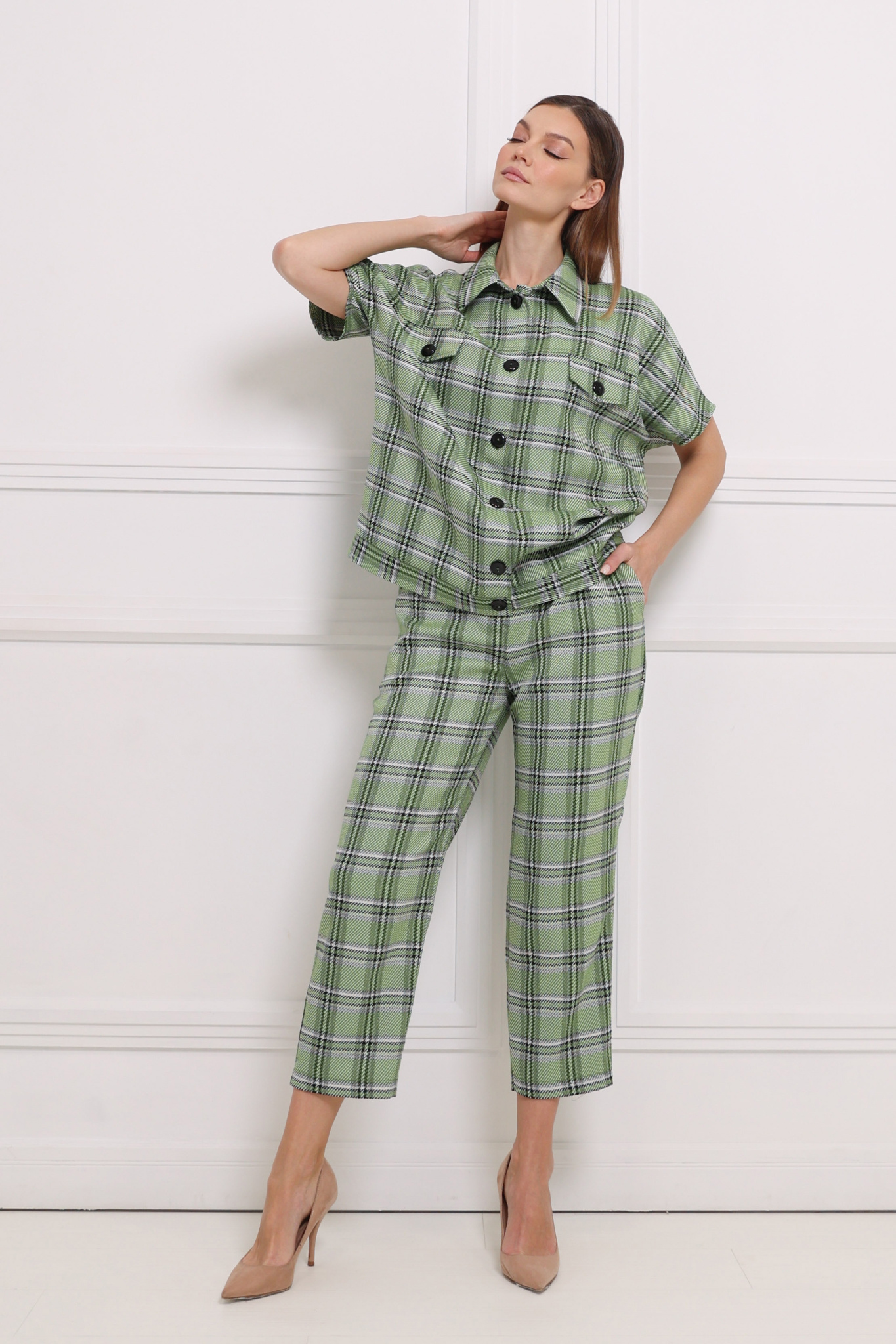 Параметры модели: 175 см, грудь 86 см, талия 66 см, бедра 96 см.