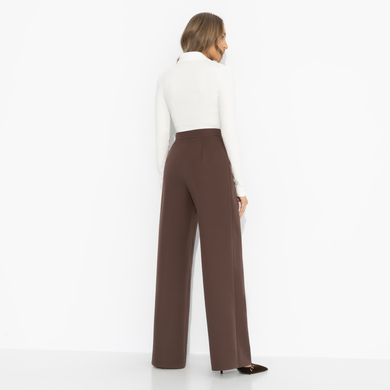 Нам было сегодня лет, когда мы узнали, что коричневый может быть универсальнее чёрного. Стилист ЧАРУТТИ рассказали нам, что шоколадный оттенок работает мягче, теплее и неожиданно подходит ко всему – от молочного до ярких акцентов. Брюки «Модный экстаз» вытягивают силуэт, красиво садятся по талии и комфортно двигаются вместе с тобой. Костюмная ткань «барби» держит форму и характер. Вывод простой: чёрный всё ещё классика, но шоколад – это уже вкус. Брюки без карманов, застёжка сбоку на скрытую молнию.