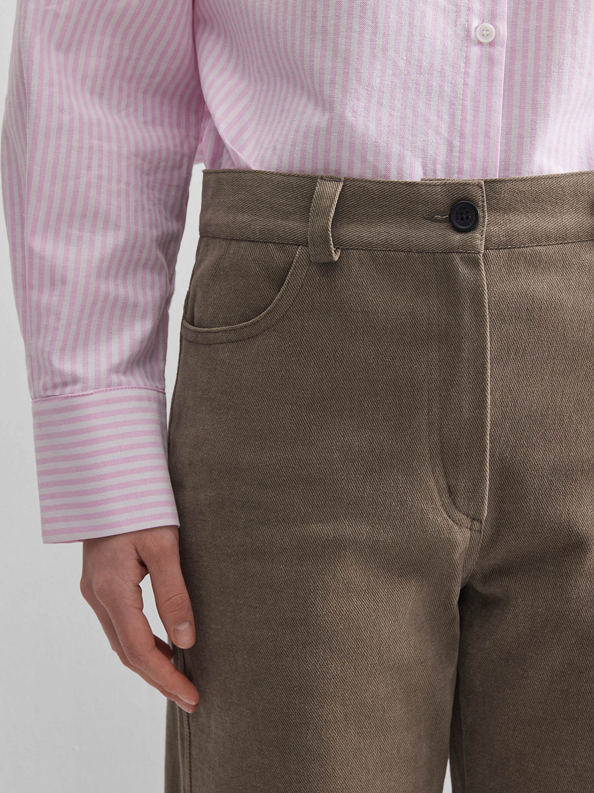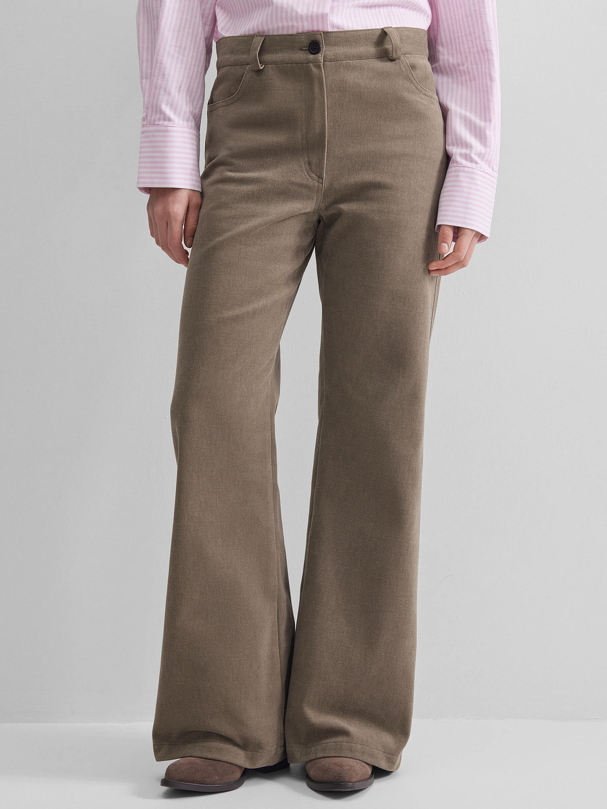 Брюки широкого кроя с силуэтом клеш — идеальное решение для тех, кто ценит комфорт и свободу движений. Изготовленные из 100% хлопкового денима, они не имеют подклада, что делает их легкими и удобными для носки в любое время года. Застежка на молнию и пуговицу обеспечивает надежную фиксацию, а два боковых и два задних кармана добавляют практичности и функциональности.