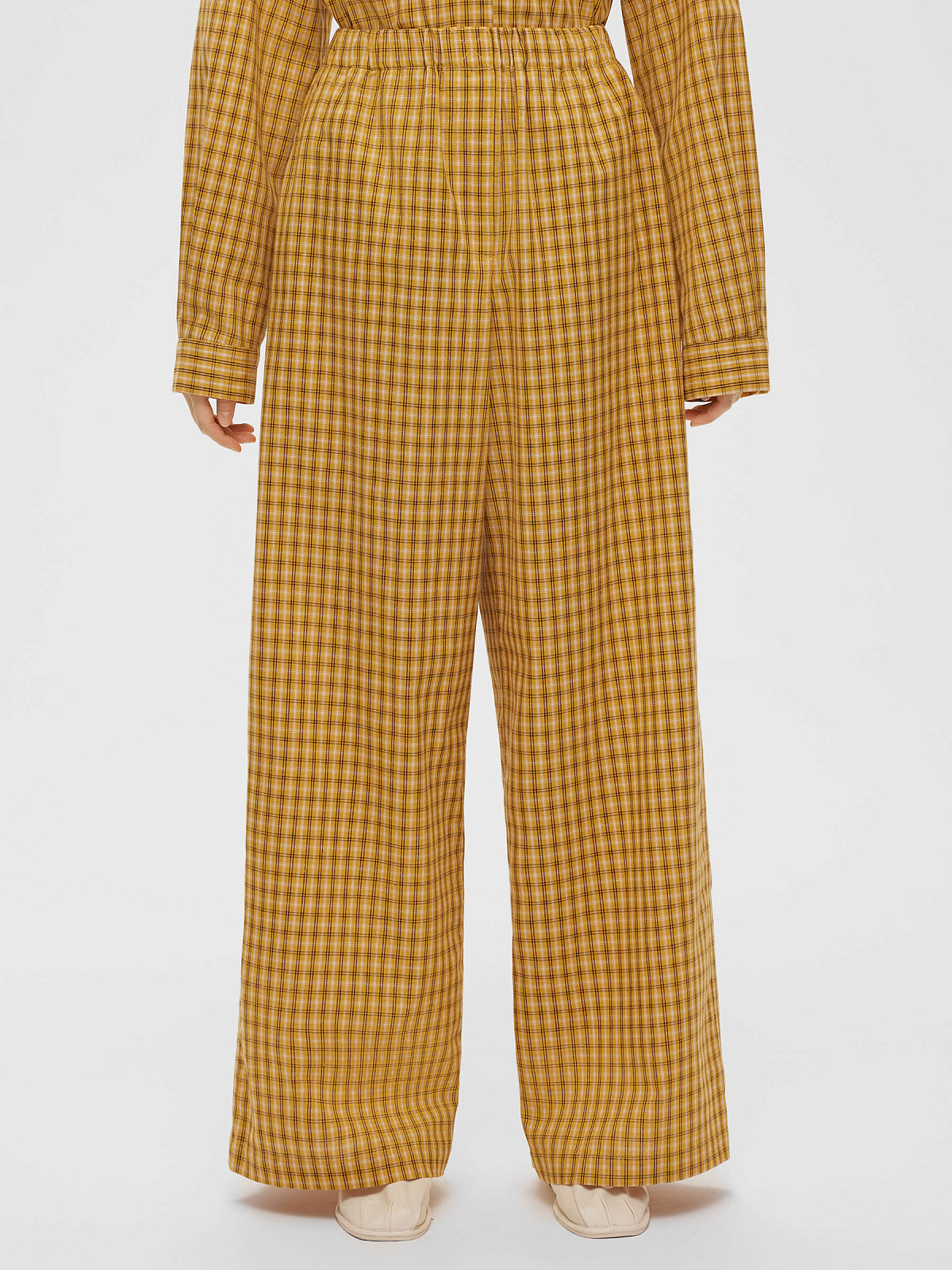 Брюки клеш из хлопка в клетку 0182, желтый