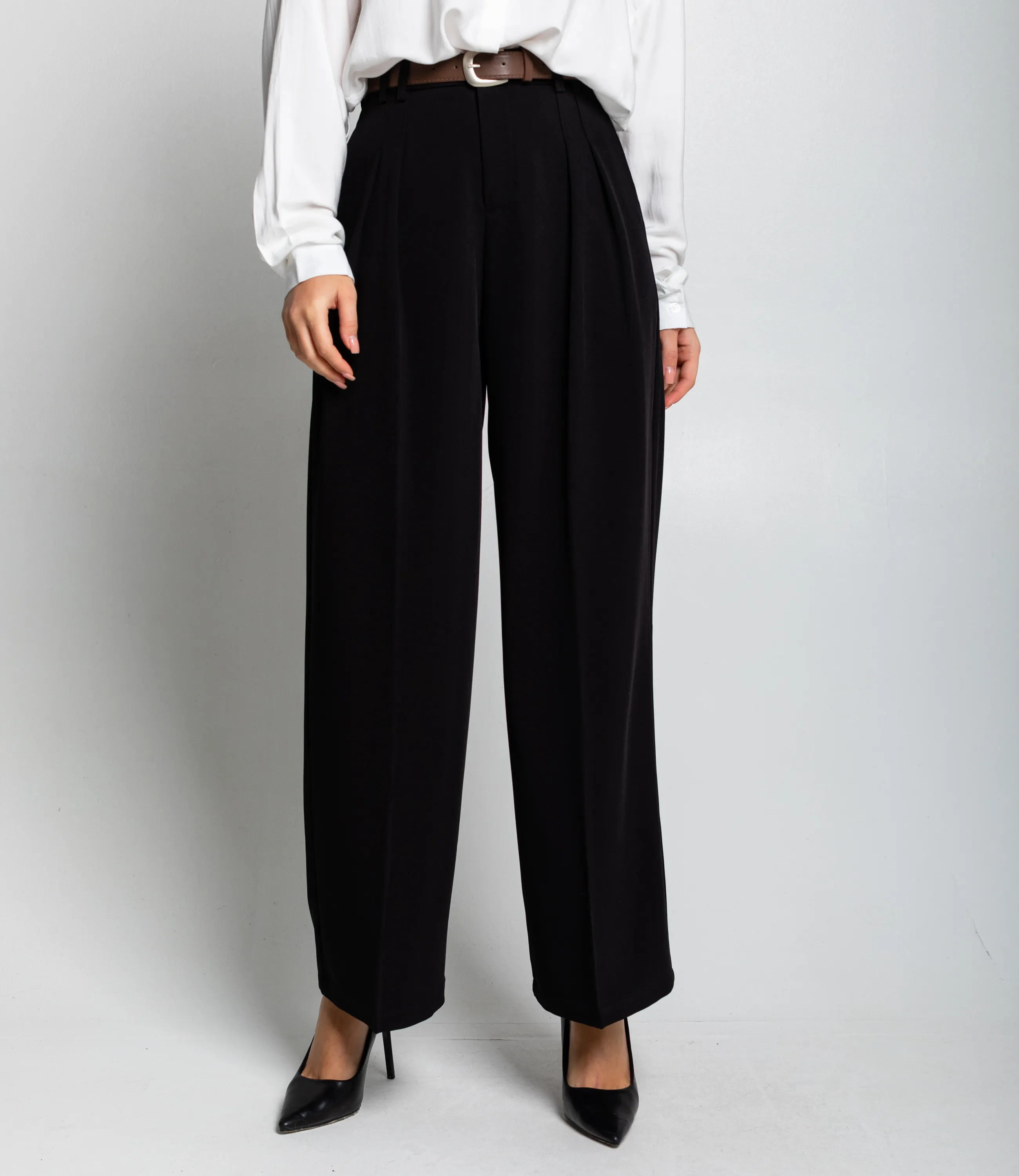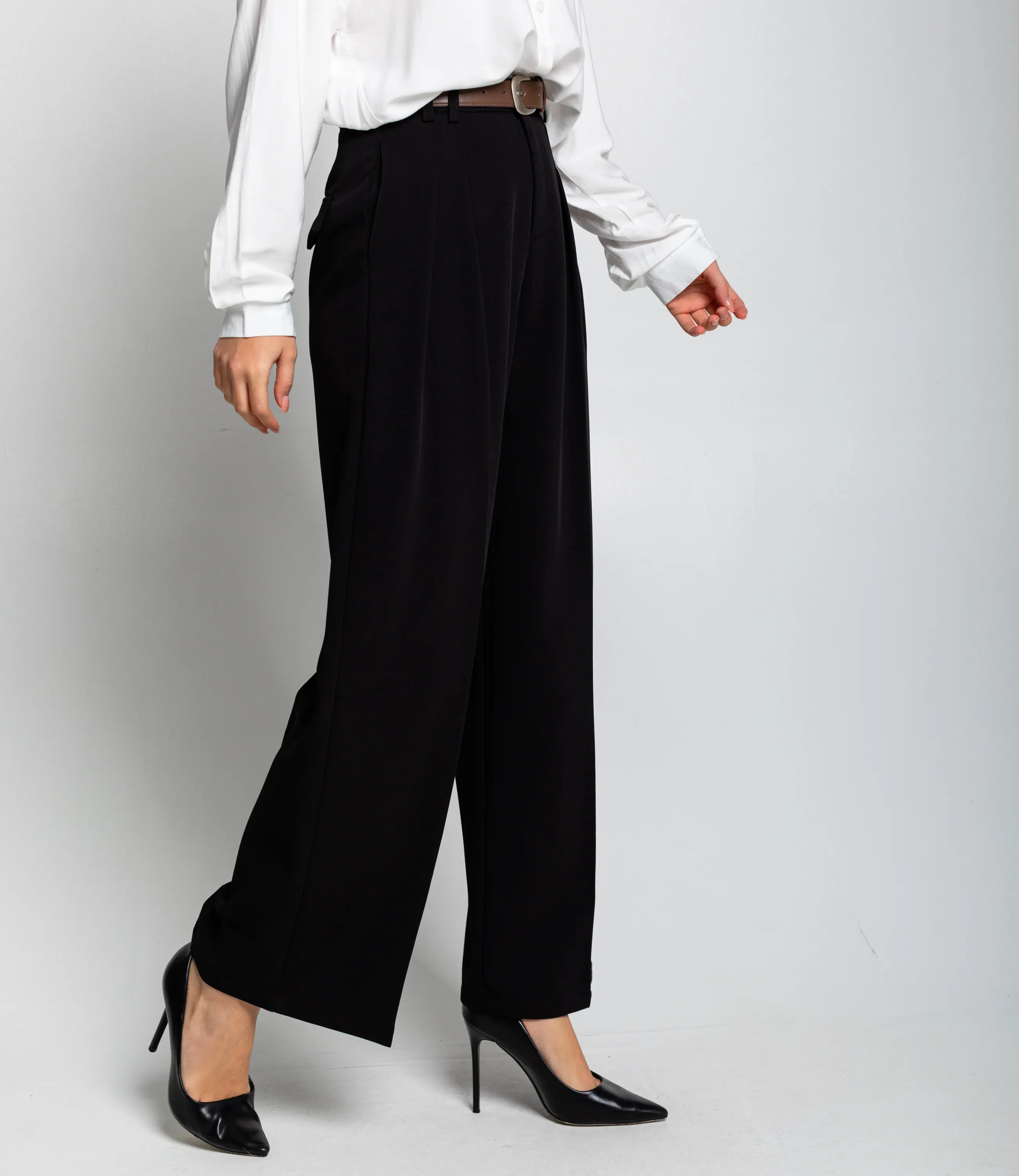 Брюки — это важная часть гардероба, которая подчеркивает утонченность и профессионализм каждой женщины. Широкие классические брюки с высокой или средней посадкой и прямыми свободными штанинами, пояс средней ширины со шлевками для ремня и потайной фронтальной застёжкой, передние аккуратные складки от пояса, врезные боковые карманы с плавным входом, ровная задняя часть без накладных карманов с возможными вытачками для лучшей посадки, плотная ткань средней плотности, держащая форму и создающая чистую вертикальную линию, аккуратно обработанные швы и широкий подшитый подол до уровня щиколотки. Для пошива использована ткань: 80% полиэстер, 20% хлопок. Материал средней плотности хорошо держит форму, обладает приятной на ощупь структурой и обеспечивает комфорт при носке. Даже после многократных стирок изделие не утратит первоначальной аккуратности и цвета, что важно для поддержания высокого уровня продаж в рознице. Обратите внимание на насыщенные оттенки: цвет соответствует фотографии на сайте. Модель имеет два боковых кармана и декоративные швы, подчеркивающие структуру изделия. Для уверенности в размере на странице представлена таблица, с помощью которой можно самостоятельно снять мерки и подобрать нужный размер. Мы предлагаем выгодные оптовые условия, гибкую ценовую политику и стабильные поставки для ваших магазинов. Цена установлена адекватная, что позволит вам формировать привлекательную наценку и обеспечивать высокую оборотность. Подарите своим клиенткам изделие, которое сочетает в себе стиль, комфорт и надежное качество.