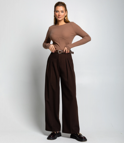 Брюки — это важная часть гардероба, которая подчеркивает утонченность и профессионализм каждой женщины. Широкие классические брюки с высокой или средней посадкой и прямыми свободными штанинами, пояс средней ширины со шлевками для ремня и потайной фронтальной застёжкой, передние аккуратные складки от пояса, врезные боковые карманы с плавным входом, ровная задняя часть без накладных карманов с возможными вытачками для лучшей посадки, плотная ткань средней плотности, держащая форму и создающая чистую вертикальную линию, аккуратно обработанные швы и широкий подшитый подол до уровня щиколотки. Для пошива использована ткань: 80% полиэстер, 20% хлопок. Материал средней плотности хорошо держит форму, обладает приятной на ощупь структурой и обеспечивает комфорт при носке. Даже после многократных стирок изделие не утратит первоначальной аккуратности и цвета, что важно для поддержания высокого уровня продаж в рознице. Обратите внимание на насыщенные оттенки: цвет соответствует фотографии на сайте. Модель имеет два боковых кармана и декоративные швы, подчеркивающие структуру изделия. Для уверенности в размере на странице представлена таблица, с помощью которой можно самостоятельно снять мерки и подобрать нужный размер. Мы предлагаем выгодные оптовые условия, гибкую ценовую политику и стабильные поставки для ваших магазинов. Цена установлена адекватная, что позволит вам формировать привлекательную наценку и обеспечивать высокую оборотность. Подарите своим клиенткам изделие, которое сочетает в себе стиль, комфорт и надежное качество.