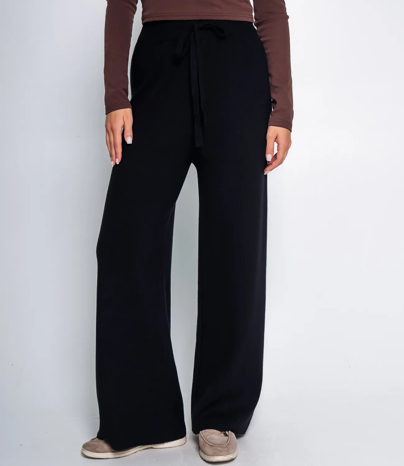 Брюки с высокой посадкой и резинкой на талии, которые свободно облегают ноги, отлично подчеркнут достоинства фигуры и скроют ее недостатки. Рост модели 168 см., 89-63-90.
