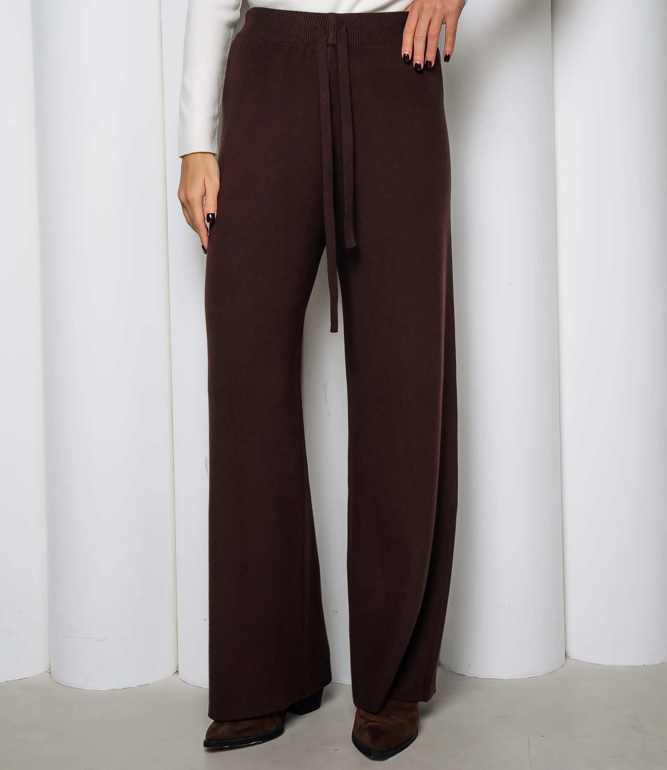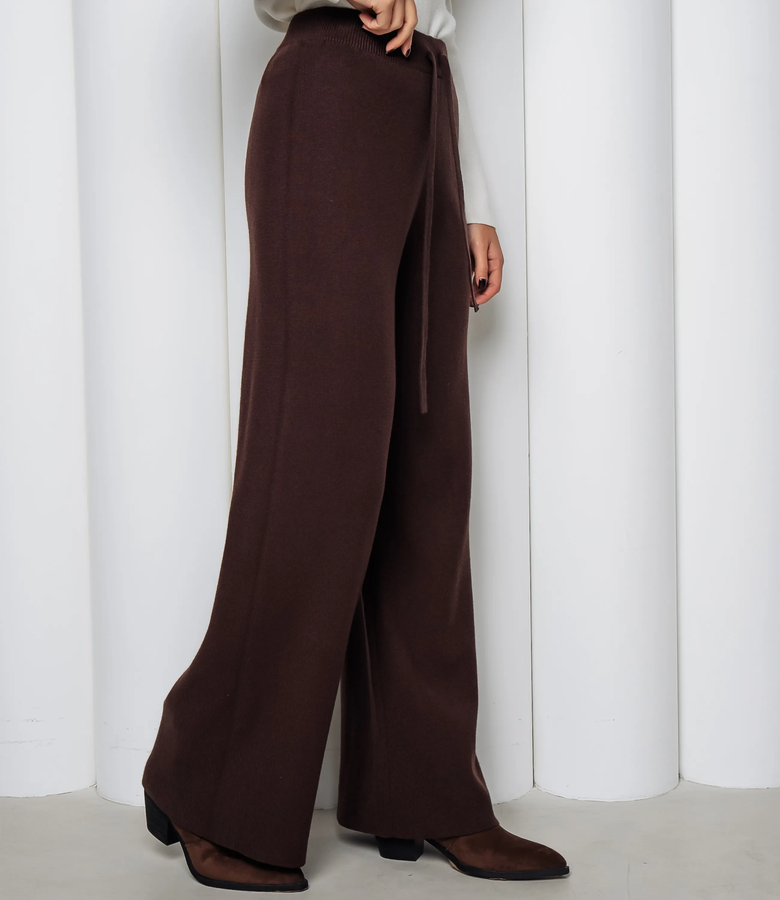 Брюки — это вещь, которая подчеркивает привлекательность и универсальность гардероба ваших покупательниц. Брюки свободного прямого кроя с широкими штанинами, средняя посадка на естественной линии талии с эластичным поясом и внутренней кулиской, регулируемой шнурком со свисающими концами; изготовлены из мягкого тянущегося трикотажного полотна с тонкой структурой вязки, поверхность однородная и матовая, ткань образует лёгкие складки при движении; боковые швы аккуратно обработаны, конструкция минималистична без декоративных вставок и видимой фурнитуры. Для пошива использована ткань 75% вискоза, 25% полиэстер, отличающаяся отменным качеством. Даже после многочисленных стирок изделие не утратит первоначальной привлекательности и сохраняет форму. Цвет соответствует фотографии на сайте и отличается насыщенностью, что облегчает продажу и удовлетворяет ожидания покупательниц. Мы представили таблицу размеров на странице, чтобы вы могли легко подобрать ассортимент под потребности клиентов и избежать возвратов. Производитель уделяет внимание современным, стильным решениям и качественной отделке, что делает эту модель выгодной для оптовых закупок. Установленная оптовая цена является адекватной и обеспечивает хорошую маржинальность при продаже в магазинах. Рекомендуем включить брюки в ассортимент — они привлекут покупательниц, ценящих сочетание качества и презентабельного внешнего вида! Рост модели 168 см., 89-63-90.