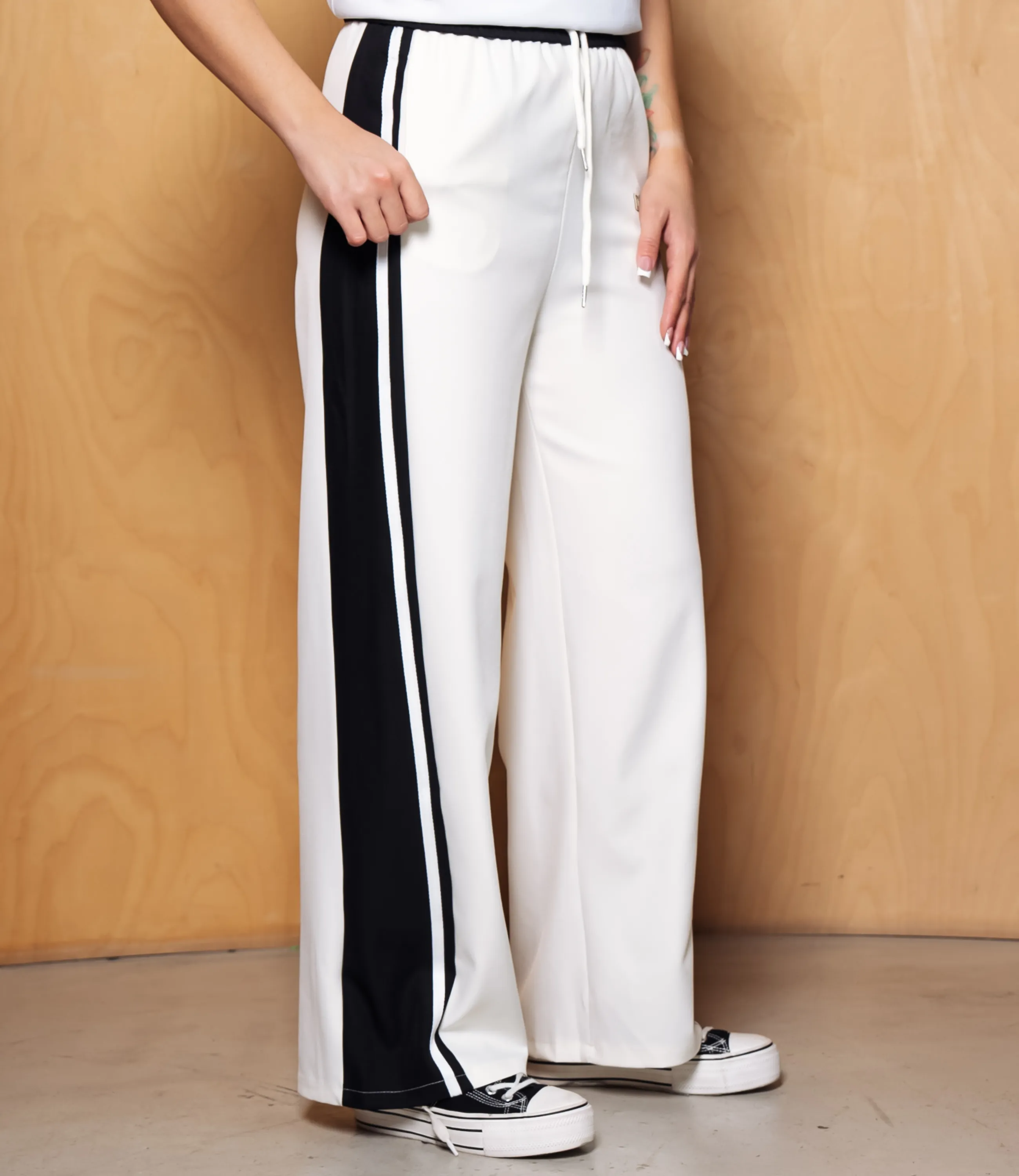 Брюки — это вещь, которая подчеркивает привлекательность и универсальность гардероба ваших покупательниц. Штаны свободного прямого кроя с расслабленной, слегка расширяющейся книзу линией ног, средней посадки с широкой эластичной тесьмой в поясе и утягивающим шнурком с металлическими наконечниками; по бокам втачные карманы средней глубины, аккуратно интегрированные в швы; от пояса до низа по внешней стороне каждой ноги тянется декоративная лампа с узкой контрастной полоской и небольшим вышитым или пришитым логотипом на бедре. Для пошива использована ткань 65% хлопок, 35% полиэстер, отличающаяся отменным качеством. Даже после многочисленных стирок изделие не утратит первоначальной привлекательности и сохраняет форму. Цвет соответствует фотографии на сайте и отличается насыщенностью, что облегчает продажу и удовлетворяет ожидания покупательниц. Мы представили таблицу размеров на странице, чтобы вы могли легко подобрать ассортимент под потребности клиентов и избежать возвратов. Производитель уделяет внимание современным, стильным решениям и качественной отделке, что делает эту модель выгодной для оптовых закупок. Установленная оптовая цена является адекватной и обеспечивает хорошую маржинальность при продаже в магазинах. Рекомендуем включить брюки в ассортимент — они привлекут покупательниц, ценящих сочетание качества и презентабельного внешнего вида!