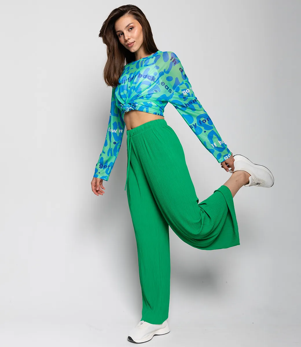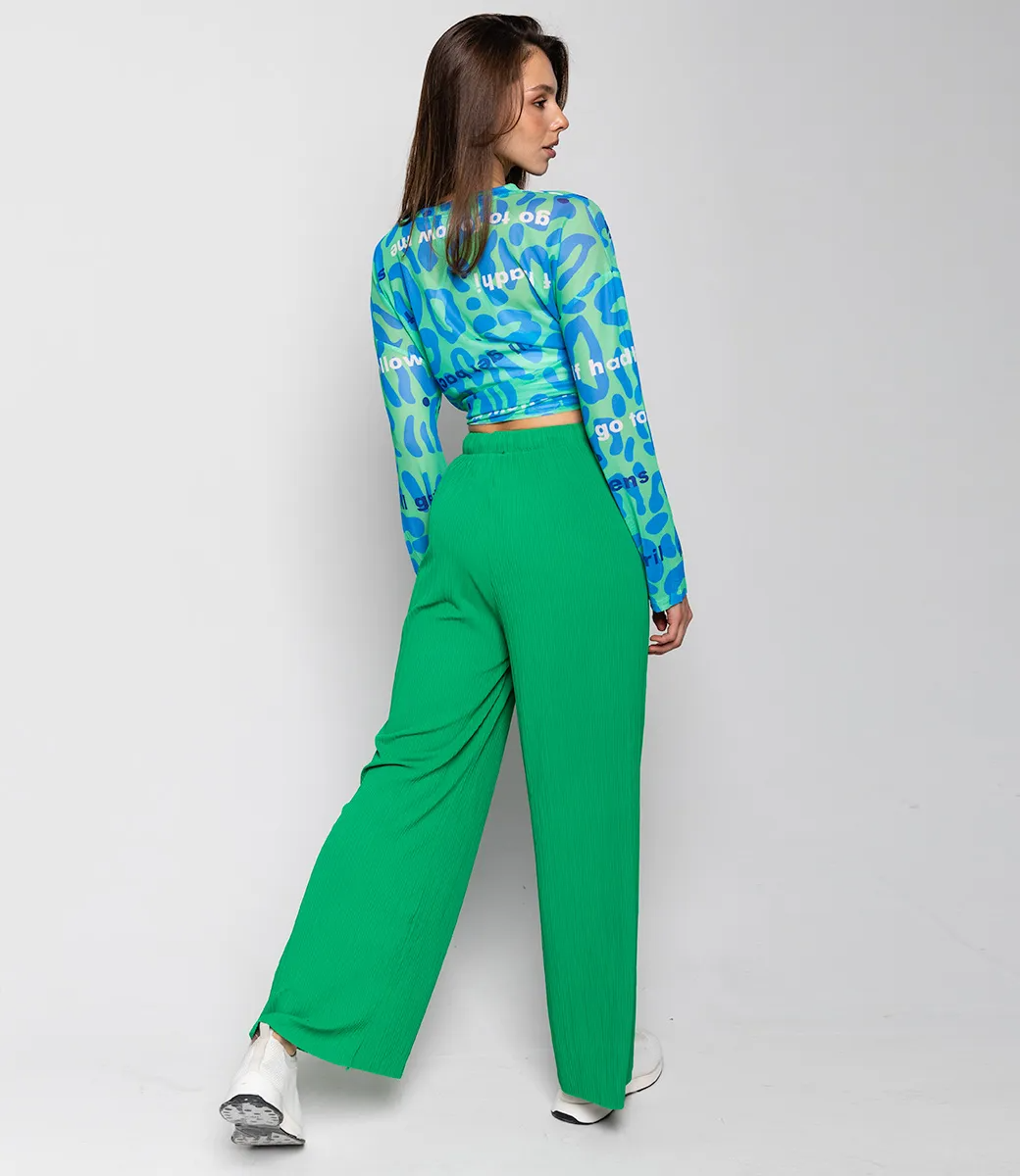 Брюки с высокой посадкой и резинкой на талии, которые свободно облегают ноги, отлично подчеркнут достоинства фигуры и скроют ее недостатки.