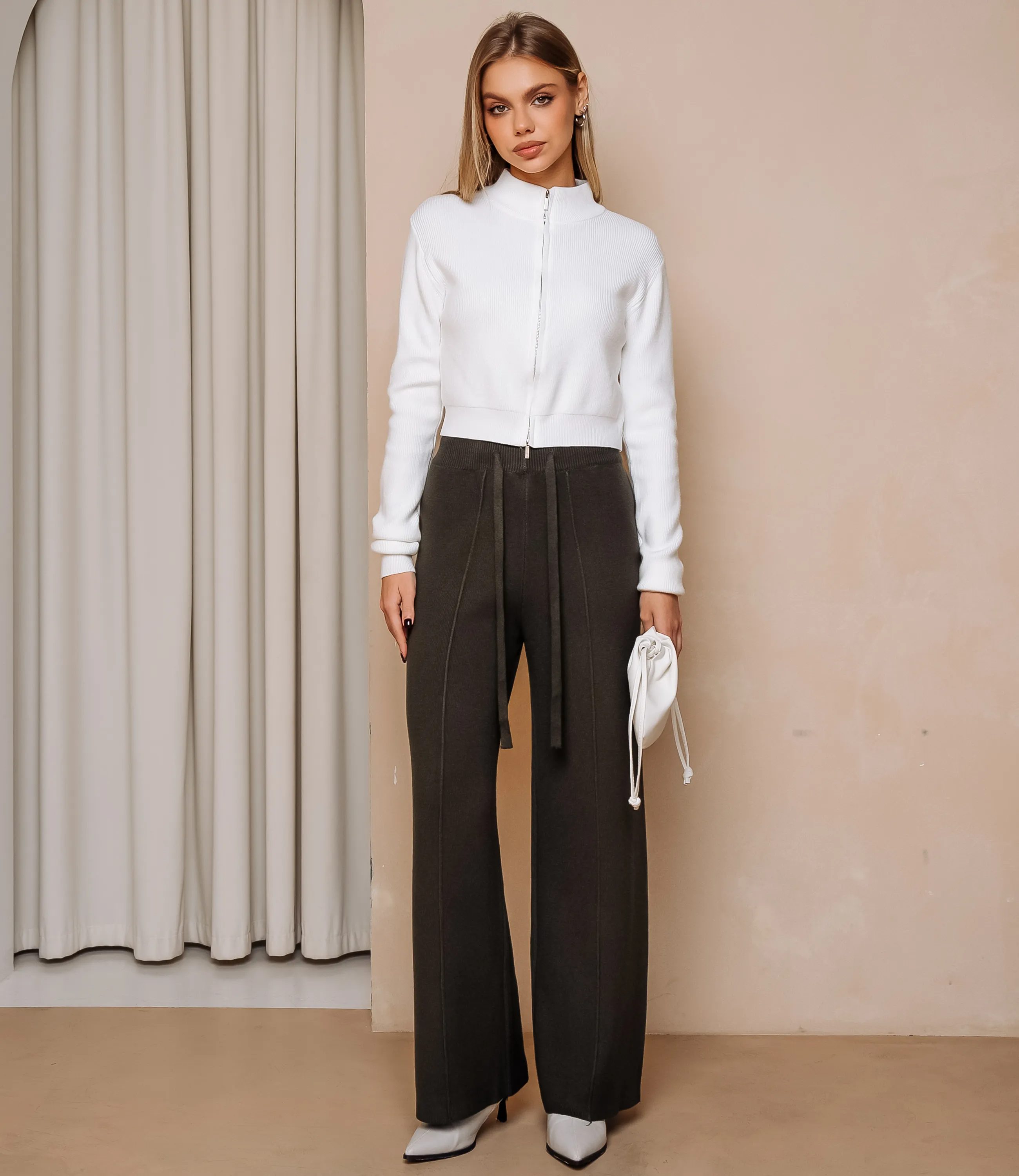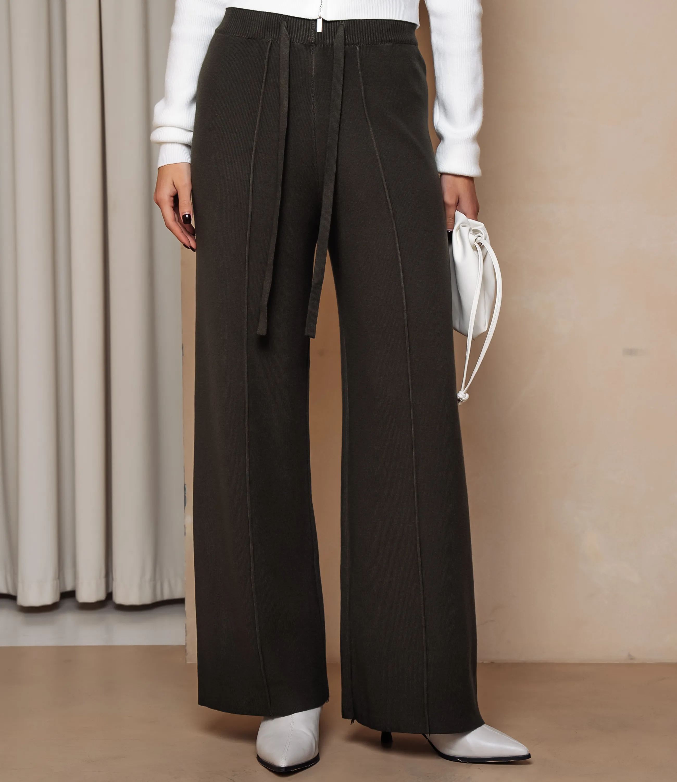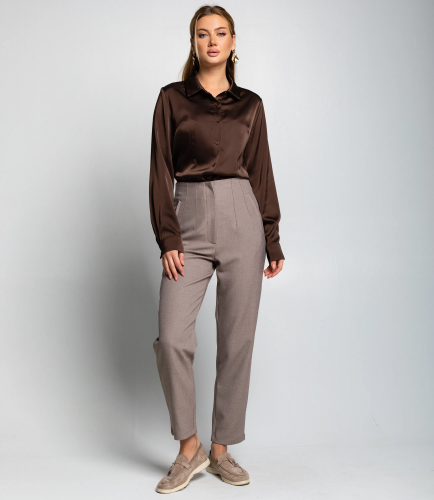 Брюки — это вещь, которая подчеркивает привлекательность и универсальность гардероба ваших покупательниц. Брюки выполнены в свободном прямом крое с широкими штанинами, длина до пола с лёгким запасом у низа, создающим прямой удлинённый силуэт. Талия средней посадки на широком вязаном эластичном поясе с внутренней кулиской и декоративными, но функциональными шнурками, свисающими спереди. Передняя часть модели оформлена вертикальными рельефными швами, проходящими от пояса вниз по центру каждой штанини, что визуально удлиняет ноги и придаёт изделию структурированность. Боковые карманы врезного типа аккуратно вшиты в боковые швы, без выступающих элементов; шаговый шов и все внешние швы выполнены декоративной прострочкой, подчёркивающей геометрию кроя. Для пошива использована ткань 65% хлопка, 35% полиэстера, отличающаяся отменным качеством. Даже после многочисленных стирок изделие не утратит первоначальной привлекательности и сохраняет форму. Цвет соответствует фотографии на сайте и отличается насыщенностью, что облегчает продажу и удовлетворяет ожидания покупательниц. Мы представили таблицу размеров на странице, чтобы вы могли легко подобрать ассортимент под потребности клиентов и избежать возвратов. Производитель уделяет внимание современным, стильным решениям и качественной отделке, что делает эту модель выгодной для оптовых закупок. Установленная оптовая цена является адекватной и обеспечивает хорошую маржинальность при продаже в магазинах. Рекомендуем включить брюки в ассортимент — они привлекут покупательниц, ценящих сочетание качества и презентабельного внешнего вида! Рост модели 168 см., 89-63-90.