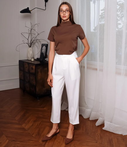 Брюки — это часть гардероба, которая подчёркивает уникальность и стиль каждой покупательницы. Прямые укороченные брюки длиной до щиколотки с чуть свободной посадкой по бёдрам и зауженными книзу голеньями, пояс средней посадки с шлевками для ремня и скрытой застёжкой. Посадка обеспечивает комфорт и свободу движений, стиль подходит для офиса и повседневной носки, визуально стройнит за счёт вертикалей и укороченной длины. Для пошива использована ткань 35% хлопок, 65% полиэстер: хлопок обеспечивает комфорт, приятные тактильные ощущения и хорошую воздухопроницаемость, полиэстер добавляет прочности, уменьшает усадку и помогает сохранять форму при активной носке и стирках. Комбинация материалов делает модель долговечной и презентабельной даже при интенсивной эксплуатации, что снижает процент рекламаций и возвратов. Для оптовых покупателей это привлекательная и оборотистая позиция: актуальный дизайн и универсальный крой упрощают формирование размерного ряда, а выразительные декоративные элементы повышают привлекательность товара на витрине. Рекомендуем включать модель в тематические подборки «streetwear» и «casual», комбинировать с базовыми футболками, худи и куртками для увеличения среднего чека, предлагать наборы ключевых размеров и наборы оттенков для ускорения оборачиваемости. Цвета и фактура соответствуют фотографиям в карточке товара; на странице размещена подробная таблица размеров для точного подбора.