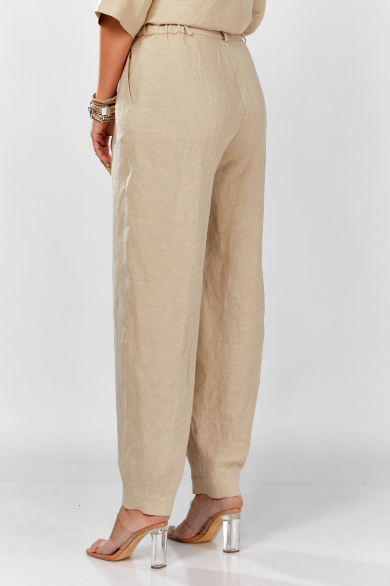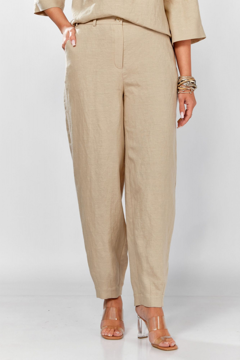 Брюки женские.Спереди застёжка на молнию и пуговицу.Сзади вытачки. В боковых швах карманы с отрезным бочком.Пояс по спинке на резинке , дополнен шлёвками.По низу брюк вытачки, создающие зауженный эффект.