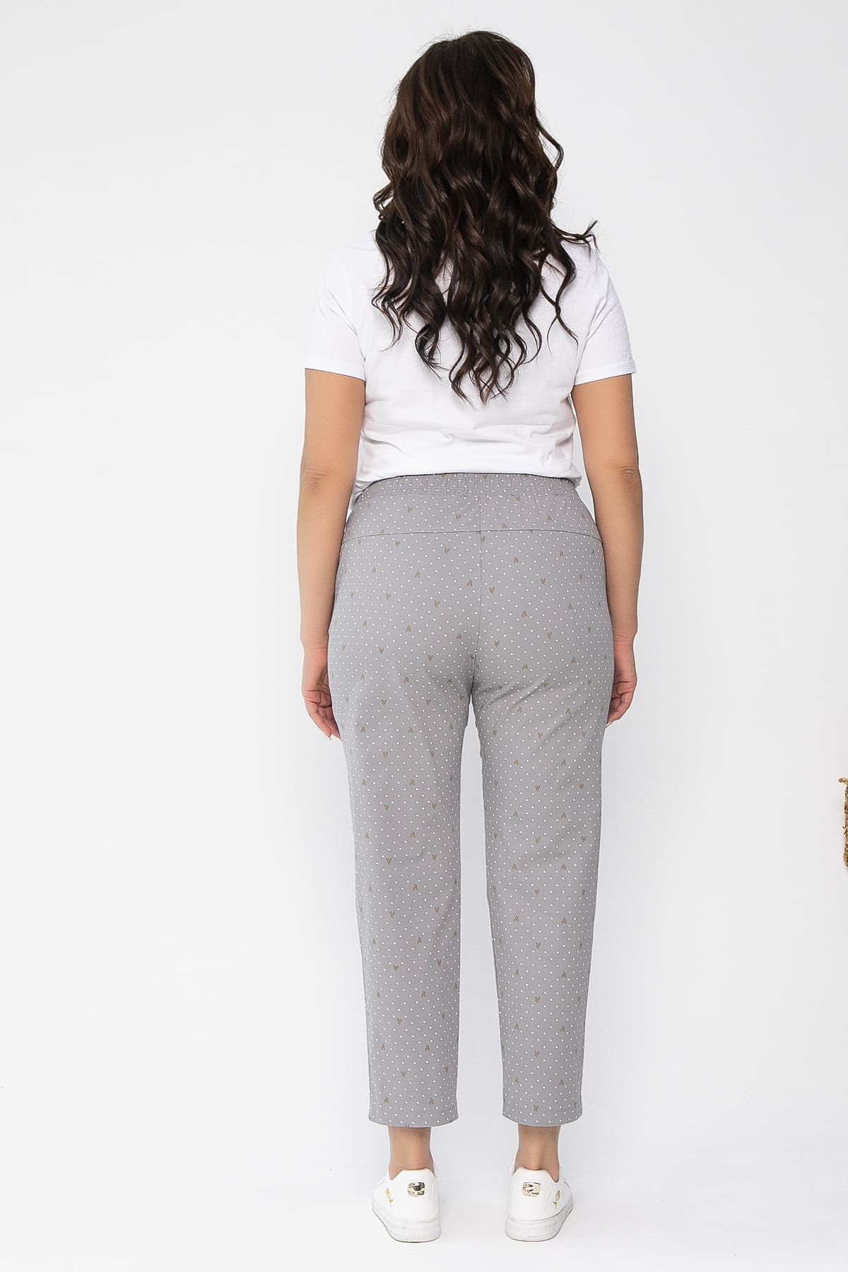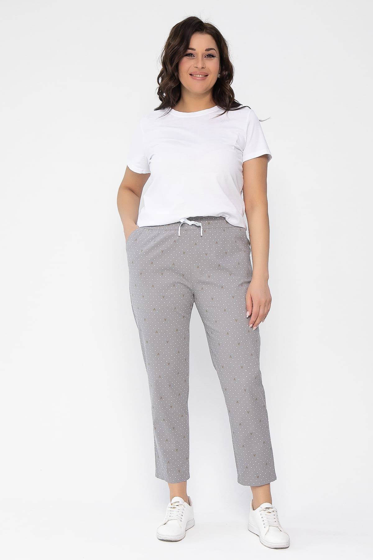 Женские брюки из хлопковой ткани со стрейчем удобны в повседневной жизни. Брюки с притачным поясом на резинке со шнуром, с карманами в боковом. Брюки по фигуре, абсолютно не сковывают движений, комфортны в носке. Эти брюки хорошо сочетаются с обувью на низкой подошве и с различным верхом.