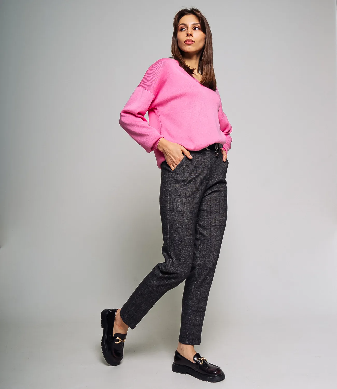 Теплые классические брюки в клетку. Данная модель подходит как для учебы или работы, так и для повседневных образов.