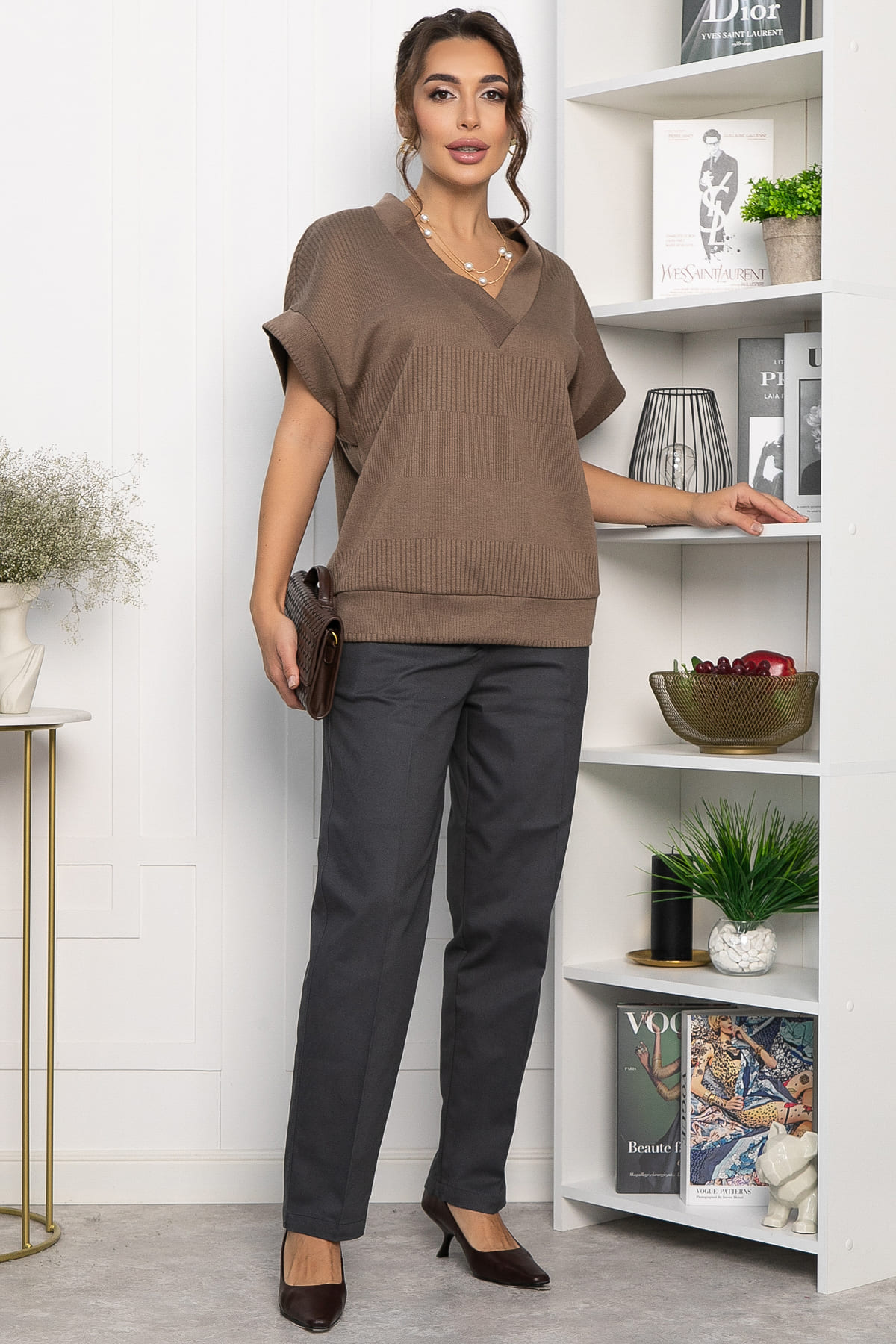 Стильные и удобные брюки в графитовом оттенке — универсальный выбор для любого случая. Выполнены из натурального материала, который обеспечивает комфорт. По талии на резинке. По бокам практичные карманы, спереди имитация застёжки. Эти брюки станут основой вашего повседневного образа, сочетая стиль и удобство.