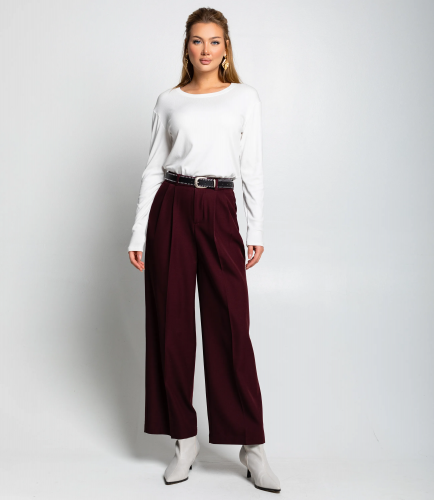 Брюки — это важная часть гардероба, которая подчеркивает утонченность и профессионализм каждой женщины. Брюки классического кроя с прямыми штанинами, слегка зауженными книзу, средней посадки на поясе с петлями для ремня и застёжкой на молнию и пуговицу, имеют шовные вытачки по передней части для аккуратной посадки по бёдрам, функциональные втачные боковые карманы и имитацию или настоящие задние карманы без клапанов, укороченную длину, заканчивающуюся немного выше щиколотки с ровным подгибом низа, пояс средней ширины, декоративные швы по передним и задним частям для структурности, выполнены из плотной ткани с ровной поверхностью и небольшой драпировкой, непроницаемой и сохраняющей форму, лаконичные без дополнительных украшений, универсальные для делового и повседневного образа. Для пошива использована ткань: 35% хлопок, 30% нейлон, 20% полиэстер и 15% спандекс. Материал средней плотности хорошо держит форму, обладает приятной на ощупь структурой и обеспечивает комфорт при носке. Даже после многократных стирок изделие не утратит первоначальной аккуратности и цвета, что важно для поддержания высокого уровня продаж в рознице. Обратите внимание на насыщенные оттенки: цвет соответствует фотографии на сайте. Модель имеет два боковых кармана и декоративные швы, подчеркивающие структуру изделия. Для уверенности в размере на странице представлена таблица, с помощью которой можно самостоятельно снять мерки и подобрать нужный размер. Мы предлагаем выгодные оптовые условия, гибкую ценовую политику и стабильные поставки для ваших магазинов. Цена установлена адекватная, что позволит вам формировать привлекательную наценку и обеспечивать высокую оборотность. Подарите своим клиенткам изделие, которое сочетает в себе стиль, комфорт и надежное качество.
