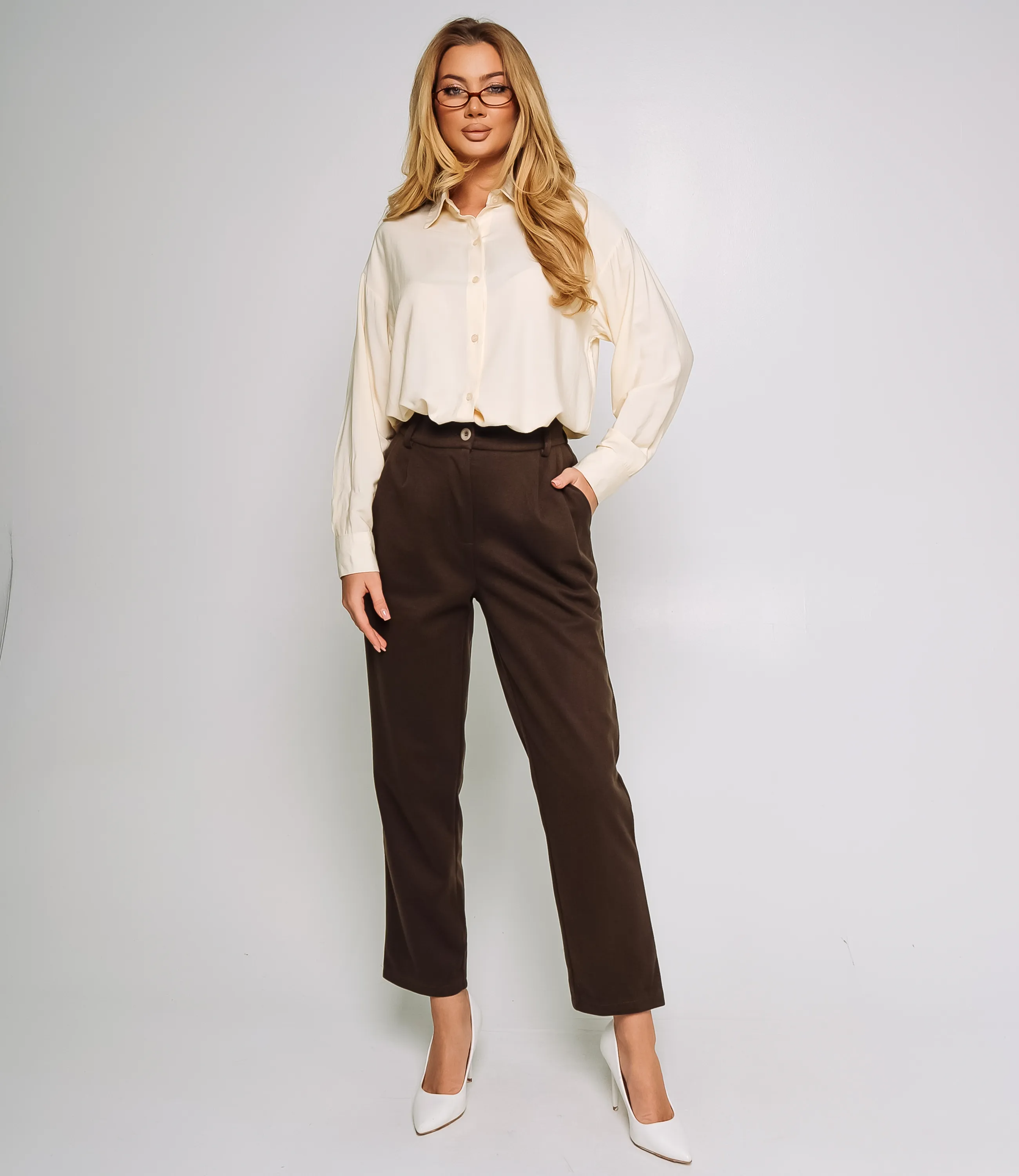 Брюки — это важная часть гардероба, которая подчеркивает утонченность и профессионализм каждой женщины. Брюки классического кроя с прямыми штанинами, слегка зауженными книзу, средней посадки на поясе с петлями для ремня и застёжкой на молнию и пуговицу, имеют шовные вытачки по передней части для аккуратной посадки по бёдрам, функциональные втачные боковые карманы и имитацию или настоящие задние карманы без клапанов, укороченную длину, заканчивающуюся немного выше щиколотки с ровным подгибом низа, пояс средней ширины, декоративные швы по передним и задним частям для структурности, выполнены из плотной ткани с ровной поверхностью и небольшой драпировкой, непроницаемой и сохраняющей форму, лаконичные без дополнительных украшений, универсальные для делового и повседневного образа. Для пошива использована ткань: 35% хлопок, 30% нейлон, 20% полиэстер и 15% спандекс. Материал средней плотности хорошо держит форму, обладает приятной на ощупь структурой и обеспечивает комфорт при носке. Даже после многократных стирок изделие не утратит первоначальной аккуратности и цвета, что важно для поддержания высокого уровня продаж в рознице. Обратите внимание на насыщенные оттенки: цвет соответствует фотографии на сайте. Модель имеет два боковых кармана и декоративные швы, подчеркивающие структуру изделия. Для уверенности в размере на странице представлена таблица, с помощью которой можно самостоятельно снять мерки и подобрать нужный размер. Мы предлагаем выгодные оптовые условия, гибкую ценовую политику и стабильные поставки для ваших магазинов. Цена установлена адекватная, что позволит вам формировать привлекательную наценку и обеспечивать высокую оборотность. Подарите своим клиенткам изделие, которое сочетает в себе стиль, комфорт и надежное качество.
