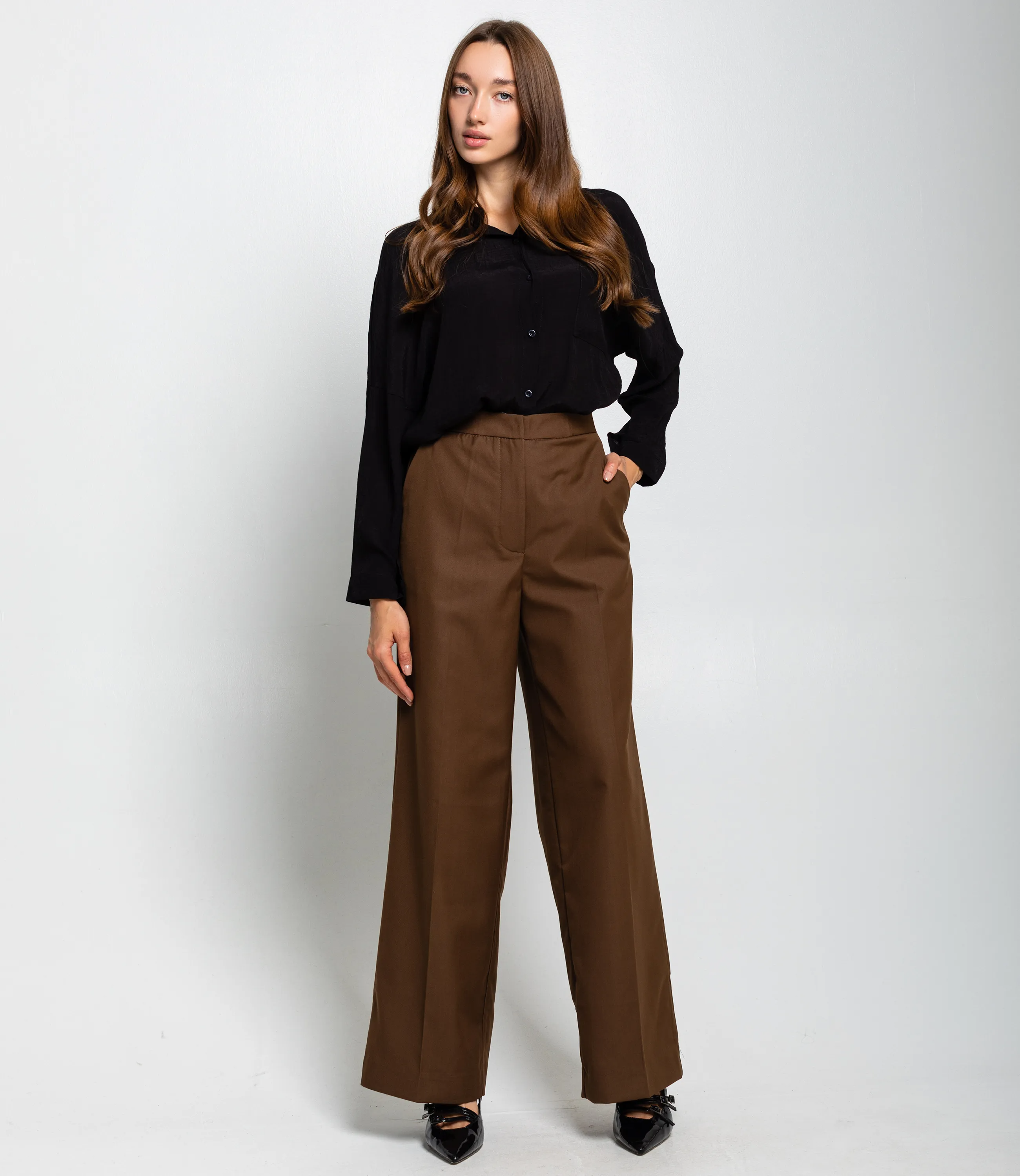 Брюки — это незаменимый элемент гардероба, который подчеркивает стиль и индивидуальность каждой женщины. Брюки со средней посадкой, прямые. Пояс средней ширины сидит на талии без видимых шлевок сверху, линия запаха и передняя пройма аккуратно скрыты, что создаёт чистый, минималистичный верхний срез. Состав: 65% хлопок, 30% полиэстер и 5% спандекс. Штанины прямые с заметным объёмом и мягкими складками, плавно переходят в эластичные манжеты внизу, которые собирают ткань и создают характерную форму. Обратите внимание на современный крой и удобную посадку, которые ваши покупатели оценят по достоинству. Мы также предоставили таблицу размеров на нашем сайте, чтобы все могли выбрать идеальный вариант. Наша цена является приемлемой для оптовых покупателей, что делает эту модель отличным дополнением к вашему ассортименту. Дайте вашим клиентам возможность выглядеть стильно и чувствовать себя комфортно с этими брюками, ведь каждая женщина заслуживает выражать свой индивидуальный стиль! Рост 168 см, 85-63-92. Вы можете заказать онлайн презентацию на интересующие Вас модели. Наши менеджеры свяжутся с Вами и проведут индивидуальную видеотрансляцию, помогут составить заказ и ответят на Ваши вопросы.