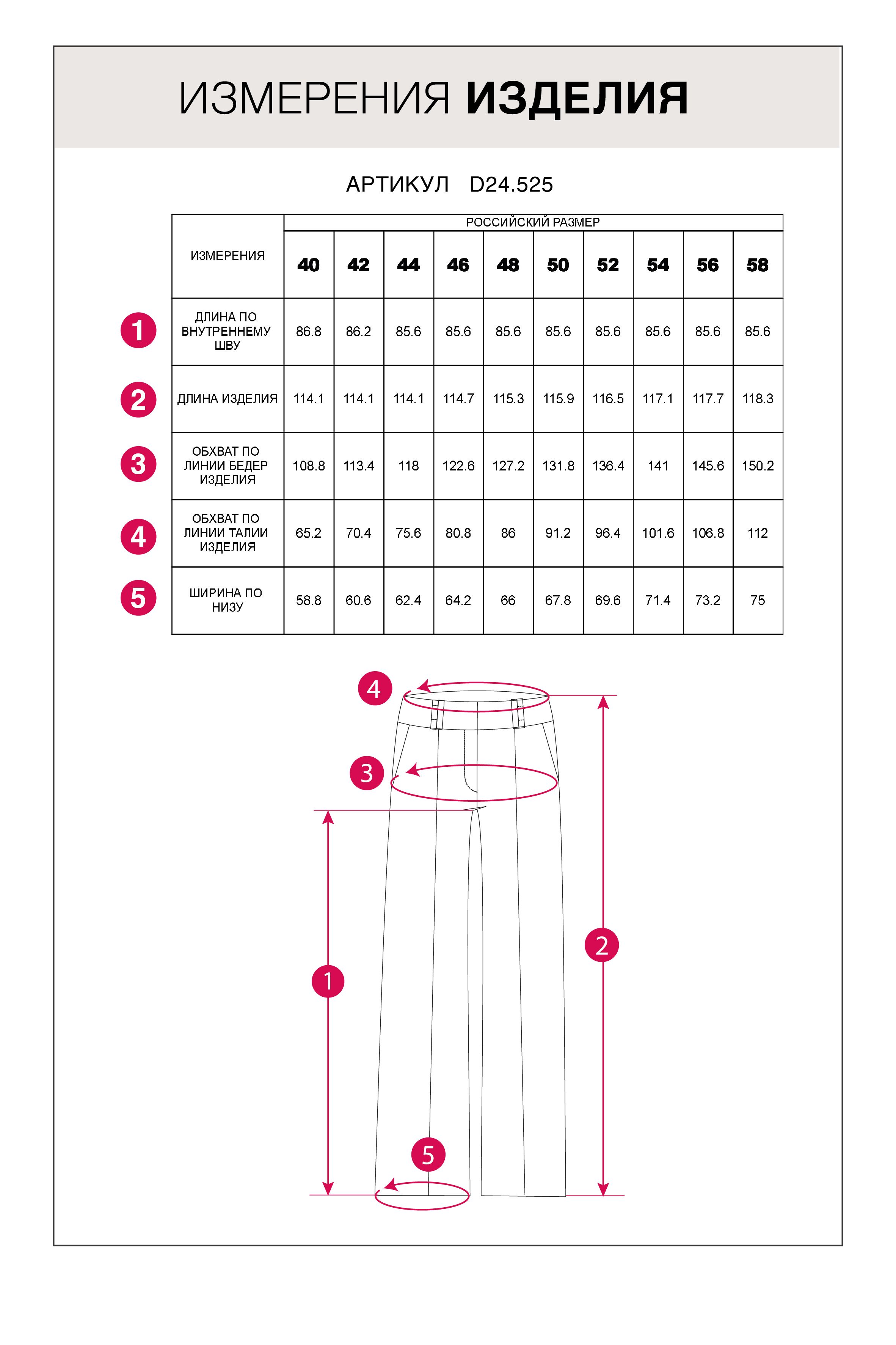 Брюки-палаццо всегда сделают образ роскошным. Для пошива модели использовали эластичный креп с плотным переплетением нитей. Ткань почти не мнется, поэтому стрелки долго сохраняют четкость. Имеют приятную фактуру с матовым блеском. Совет стилиста: строгий и элегантный образ дополните любым жакетом с водолазкой и обувью на высоком каблуке, а сели хотите создать непринужденный образ, сочетайте с рубашкой, футболкой и кедами.