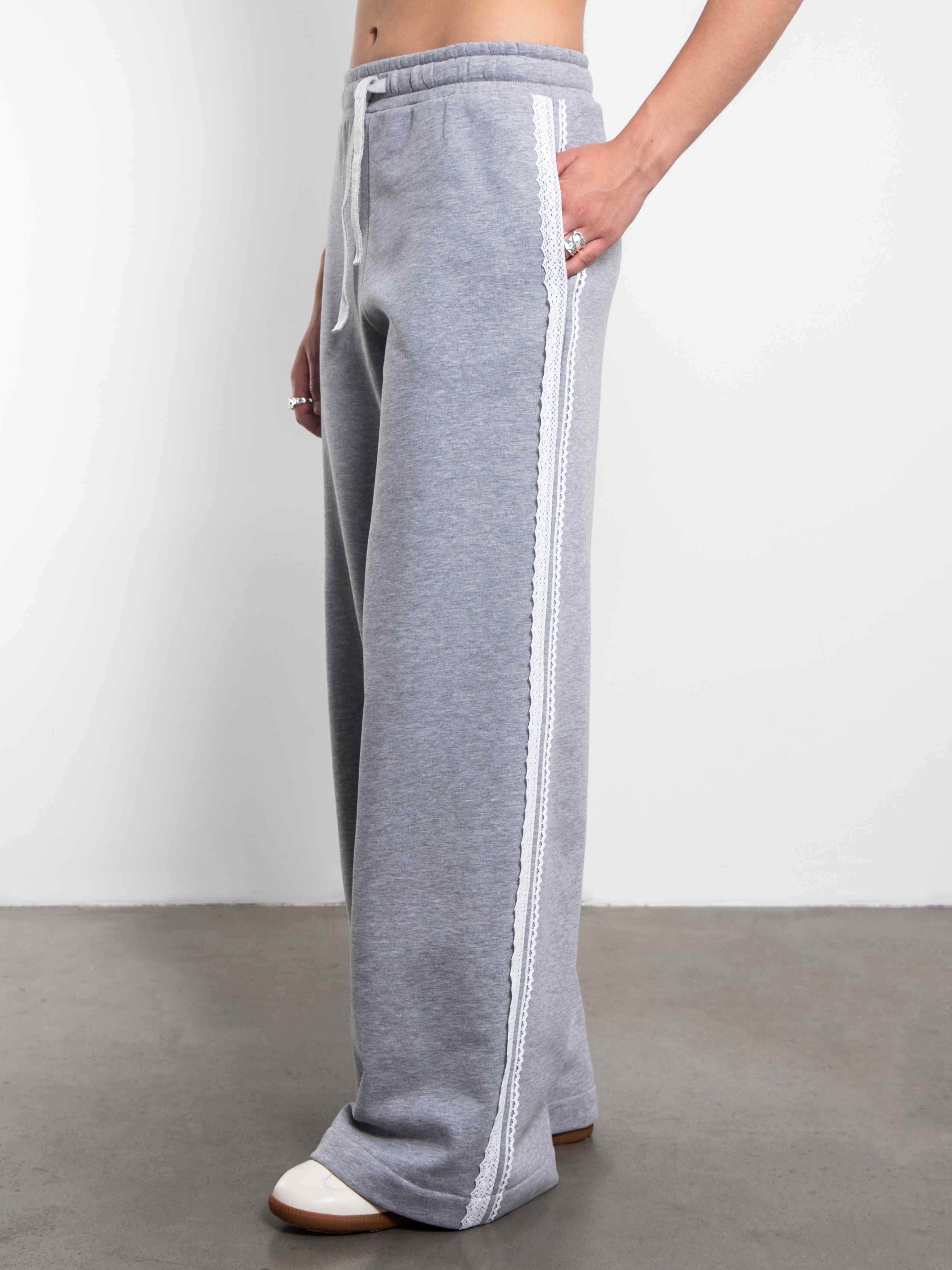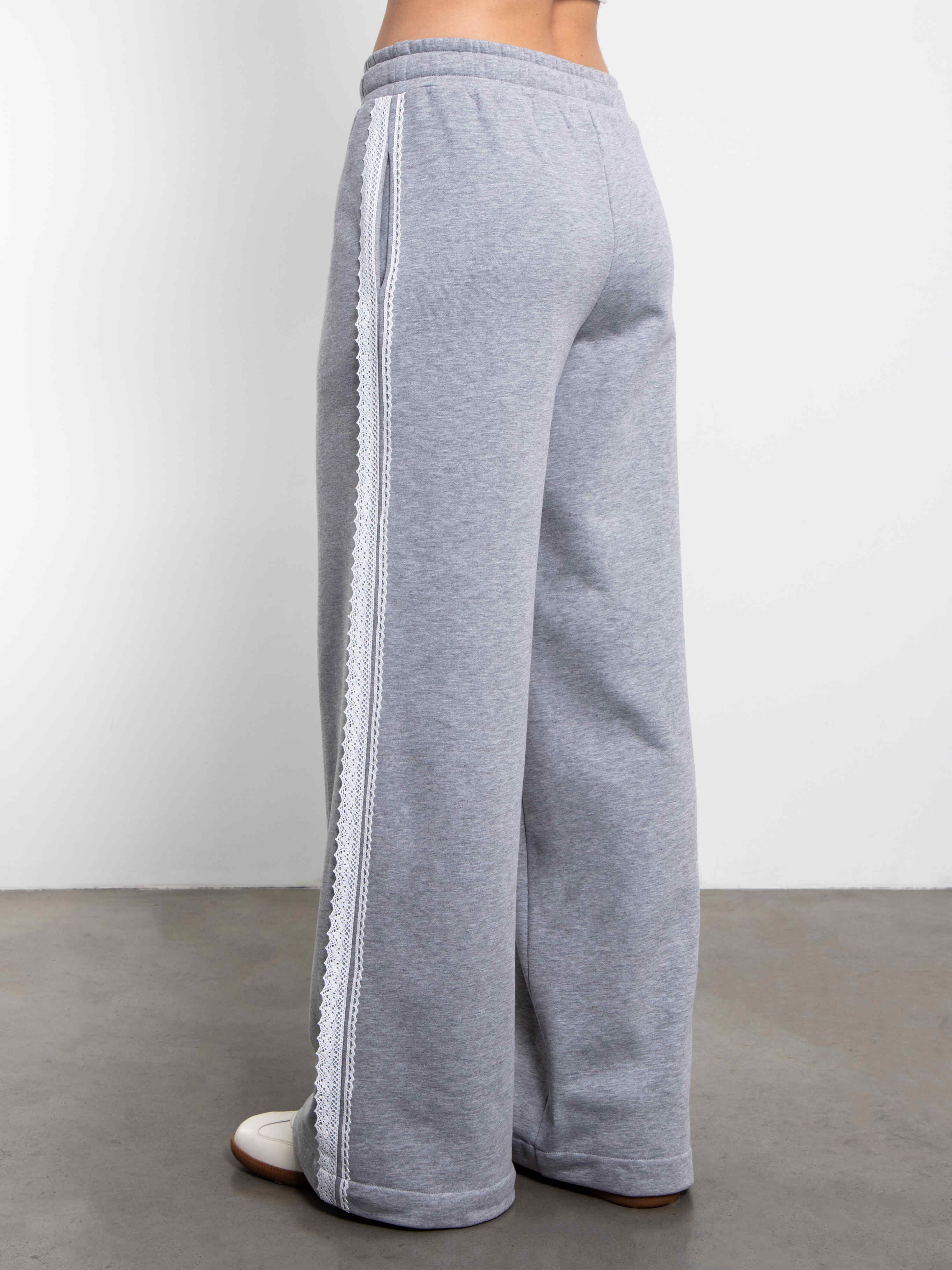 Мягкие брюки идеально подходят для повседневных дел или отдыха. Брюки имеют эластичную тесьму по талии, которая создают идеальную посадку и комфорт, шнурок и нежное кружево по боковому шву.