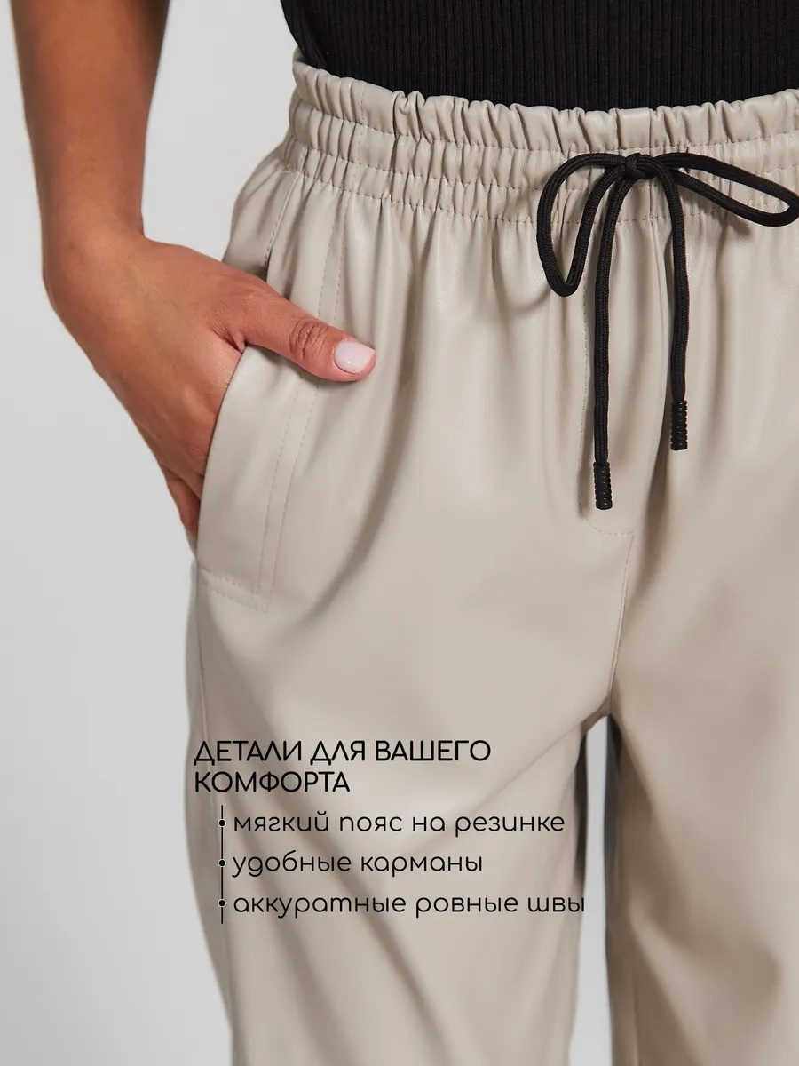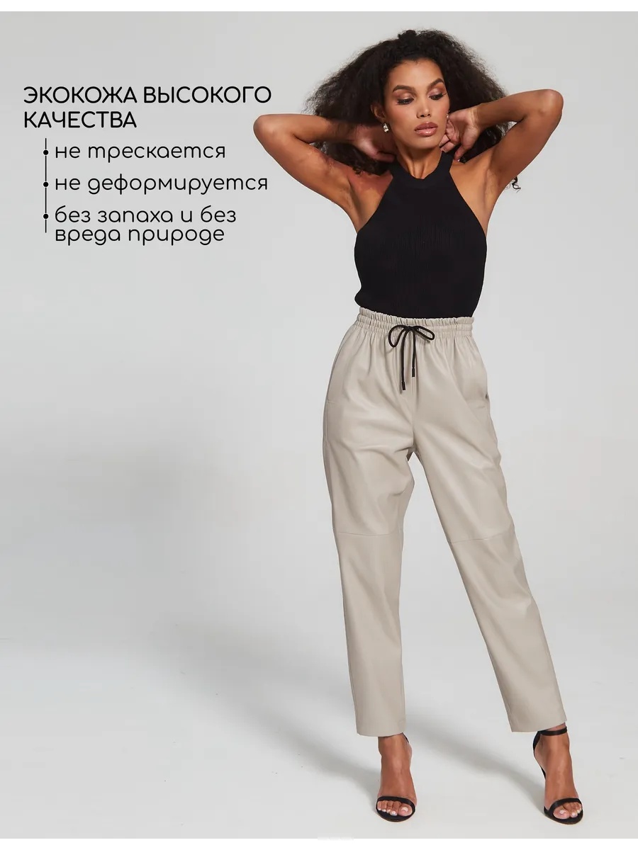 Кожаные брюки-бананы из экокожи на замшевой основе — стильный и удобный выбор для любого сезона. Зауженные к низу, с резинкой в талии, они подчеркивают фигуру и обеспечивают комфорт как высоким, так и невысоким женщинам. Плотный материал поддерживает форму и подходит для стройных и полных. Универсальны для офиса и повседневной носки. Удобные карманы добавляют практичности. Эта базовая модель сочетает премиальное качество, стиль и функциональность — идеальное решение для осени и зимы.