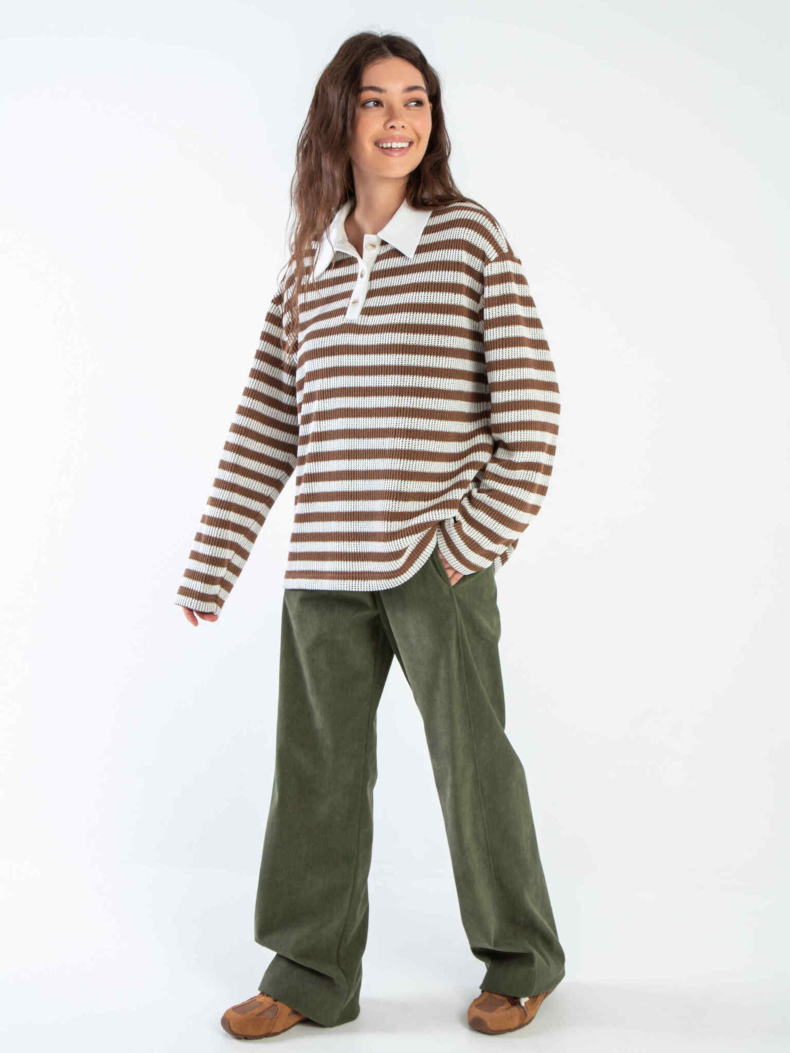 Прямые брюки из вельвета. Вельвет сохраняет свое место на подиуме этой зимой! Брюки изготовлены из теплого и комфортного вельвета, который согреет вас в самые холодные дни. Два косых кармана. Незаменимый предмет повседневного гардероба.
