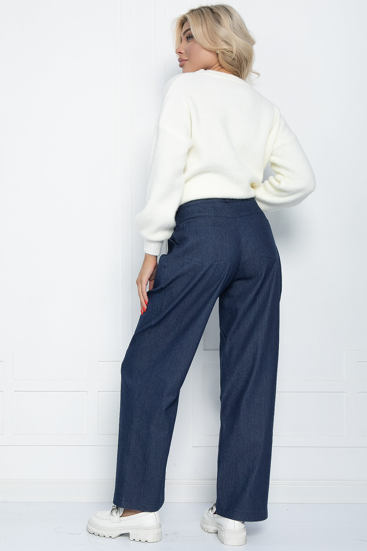 Широкие свободные брюки — это прекрасный выбор для повседневного образа. Такие брюки будут отлично сочетаться с джемперами, худи, рубашками и свитерами. Чтобы завершить образ, можно выбрать обувь на каблуке или даже спортивные кеды, в зависимости от вашего настроения и стиля. Они оснащены функциональными карманами и шлёвками для ремня, а также имеют декоративные защипы по переду.