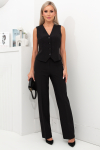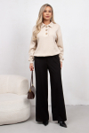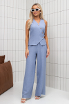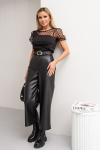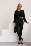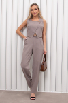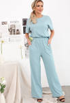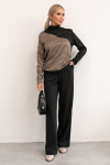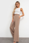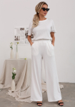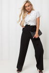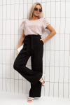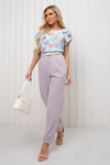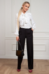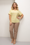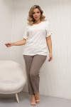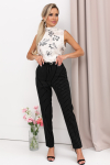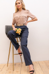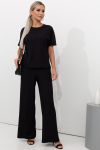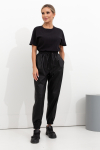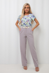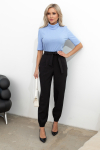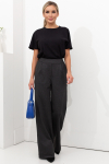Прямые брюки из трикотажного полотна. Отрезной пояс по линии талии на широкой резинке. Спереди стрелка закреплена строчкой, что зрительно удлиняет ноги. Боковые карманы с отрезным бочком. Модель выполнена из качественного трикотажа, который хорошо держит форму. Прекрасная модель для активных будней и отдыха.
