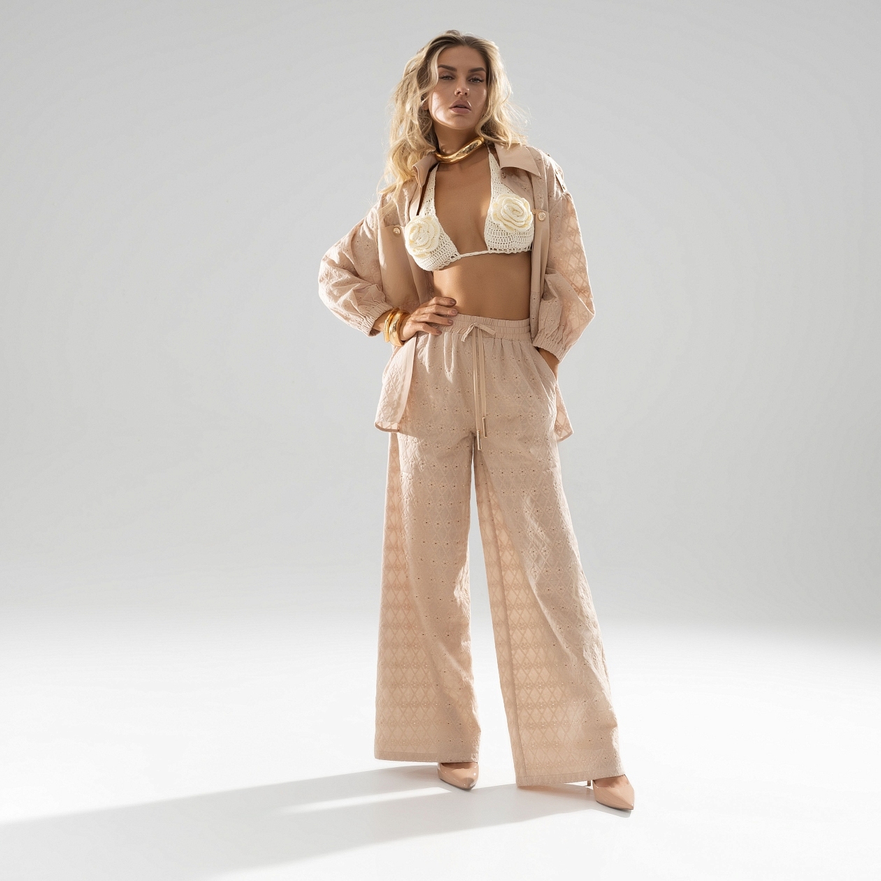 Брюки «Роскошный момент» от CHARUTTI — это идеальный выбор для создания элегантного и комфортного образа. Эти брюки палаццо выполнены из батиста с вышивкой, штапеля и трикотажного подклада, что обеспечивает не только стильный внешний вид, но и исключительный комфорт. В этих брюках вы будете выглядеть великолепно и чувствовать себя уверенно в любой ситуации.
