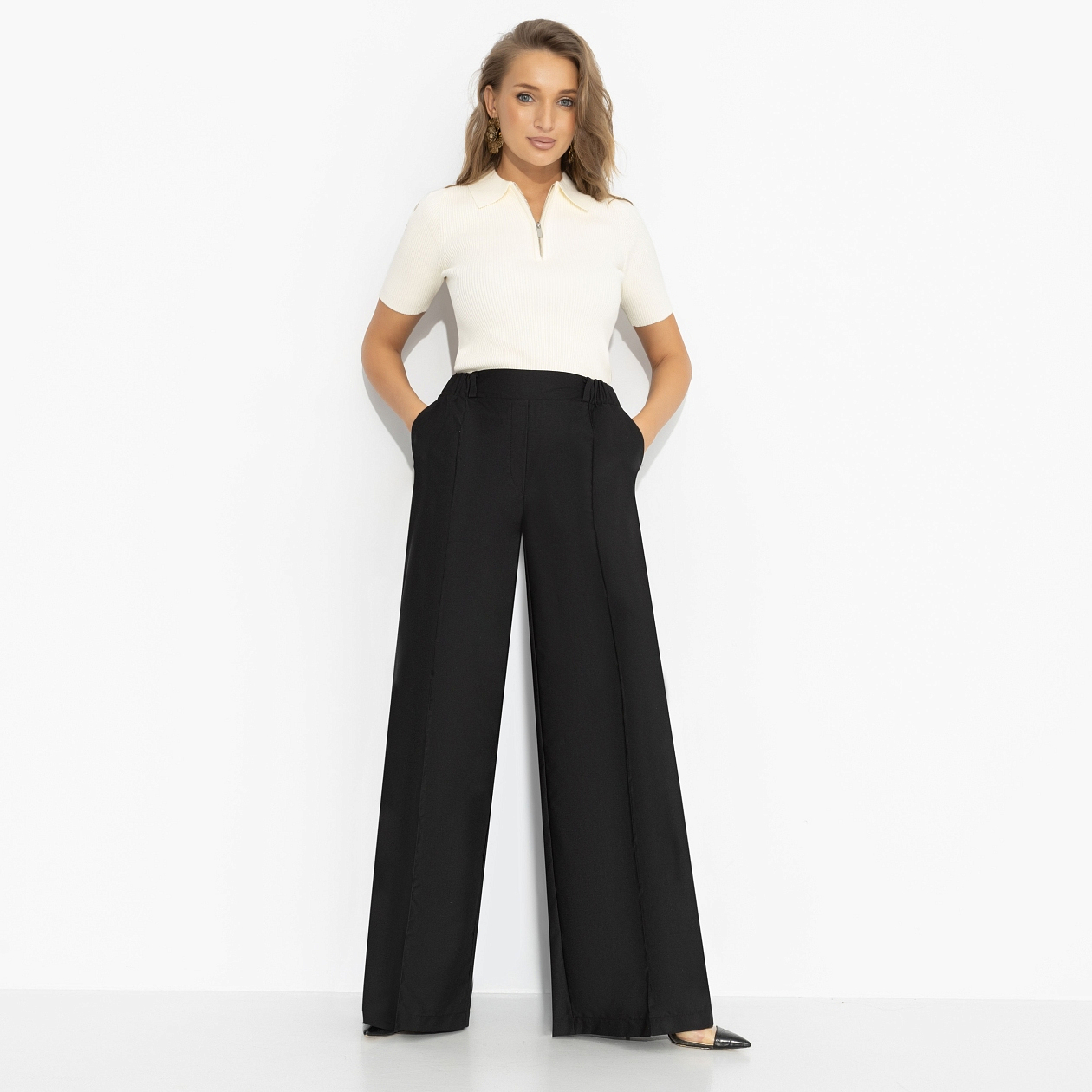 Я: ничего не хочу. Также я: хочу, чтобы всё было по-моему. Чёрные брюки от ЧАРУТТИ идеально поддерживают любое твое настроение. Высокая посадка подчёркивает талию, широкий крой и вертикальная стрелка вытягивают силуэт и задают тот самый уверенный шаг. Минимализм без лишних слов – зато с вау-эффектом, который считывается сразу. Брюки с карманами на резинке. Ткань с лёгким блеском.