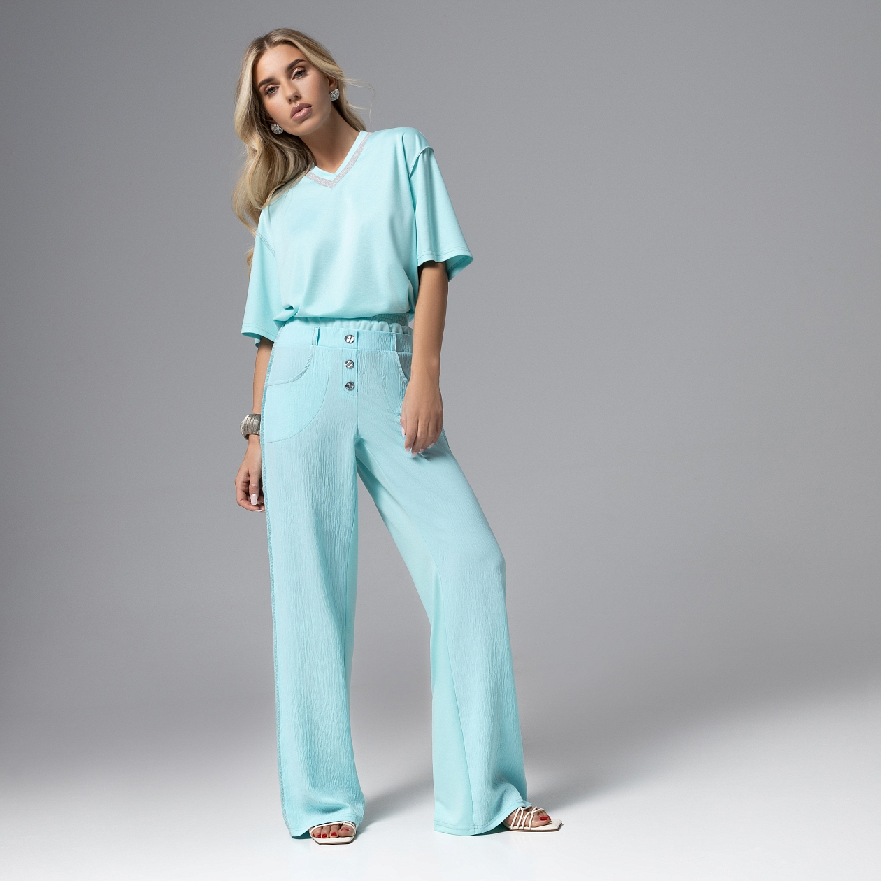 Брюки с двойным поясом, Раскованный шик (лазурные)