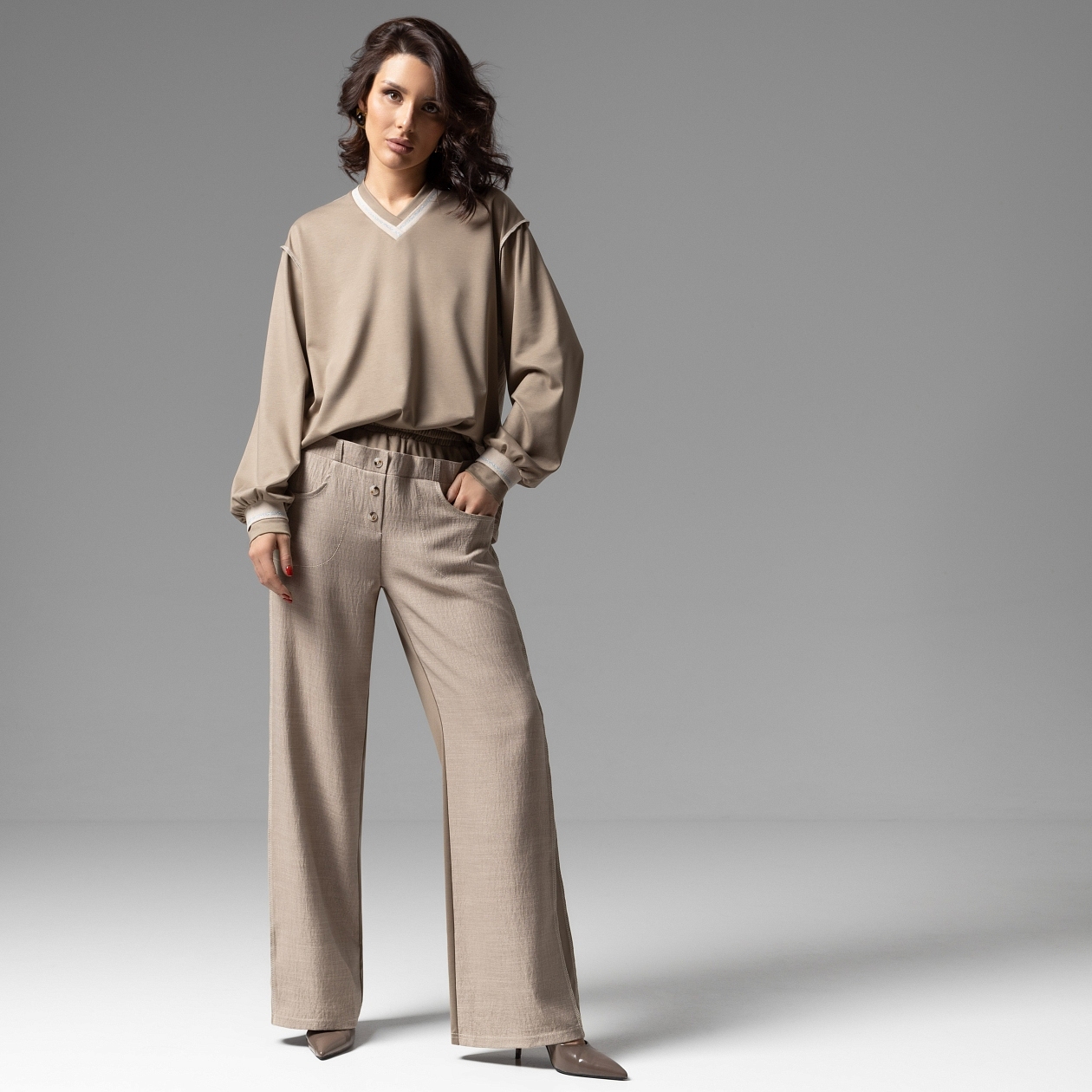 Экстравагантность и элегантность никогда не были еще настолько близко. Нетривиальный крой брюк выдаст вашу неповторимость. Струящийся материал подчеркнет длину ног и плавность походки. Движение только вперед. Брюки прямого кроя в комбинации нескольких видов ткани. Есть карманы. Акцентный крой с техникой наружных швов. Имитация многослойности. Использована фурнитура премиального качества. Пояс на резинке.