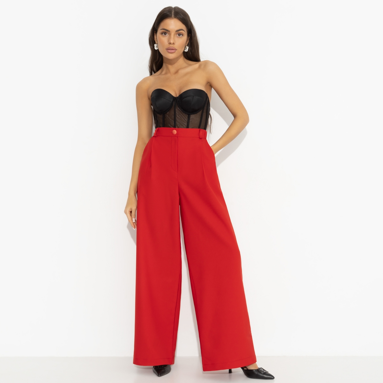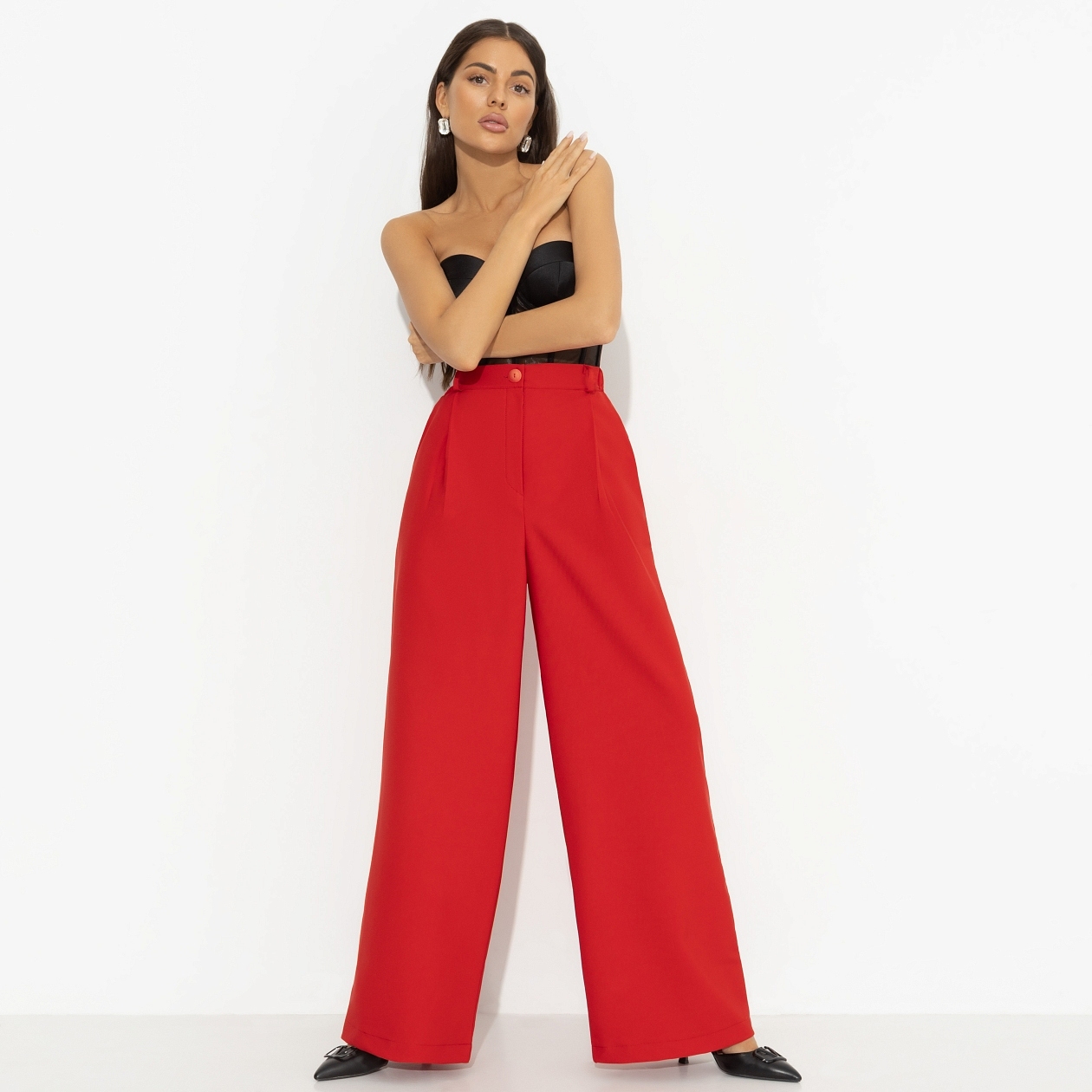Важно не только сделать первый шаг к мечте, но и сделать его красиво. Ключевое решение запомнится надолго, если принять его в красных брюках CHARUTTI. Этот момент будет ярко смотреться в пересказе детям и внукам спустя много лет. Брюки широкие. Высокая посадка на талии. Изделие застегивается на молнию и пуговицу. Пояс дополнен резинкой для лучшего прилегания. Есть шлевки. Брюки с карманами.