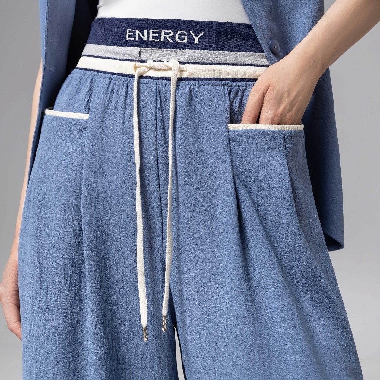 Тренд, влившийся в ваш образ жизни. Молодость и смелость вшиты в изделие из коллекции PREMIUM. Штаны с акцентной линией талии для модного запоминающего образа. Бескомпромиссное качество изделия, как обязательное условие. Брюки свободные из легкой пластичной ткани. Посадка высокая, на талии. Изделие с карманами.