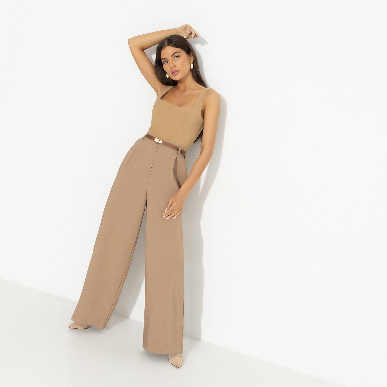 Традиционное итальянское печенье Кантуччи можно легко приготовить в домашних условиях. Но зачем? Лучше надеть брюки CHARUTTI в цвете песочного теста и отправиться в итальянскую кондитерскую. И посуду мыть не придется. Брюки широкие. Высокая посадка на талии. Изделие застегивается на молнию и пуговицу. Пояс дополнен резинкой для лучшего прилегания. Есть шлевки. Брюки с карманами.