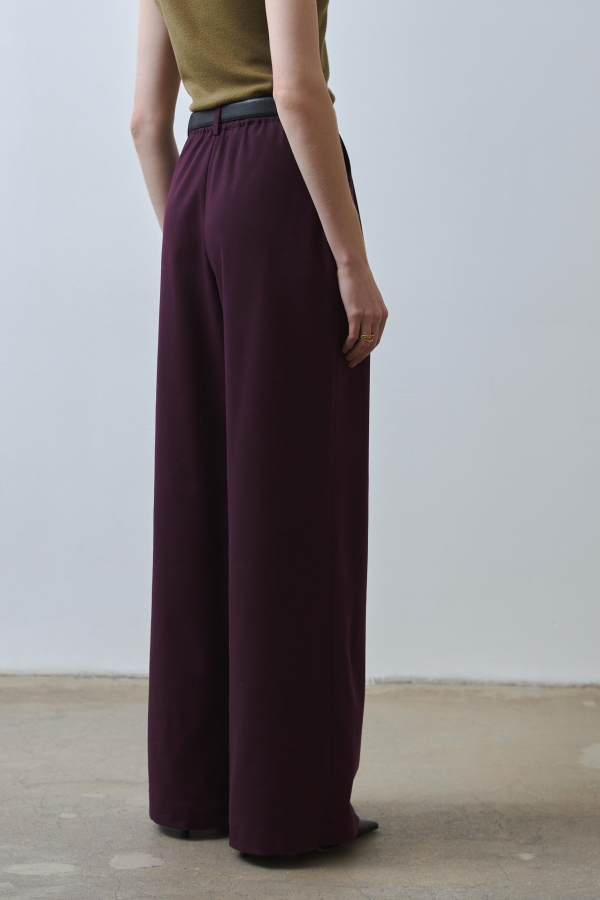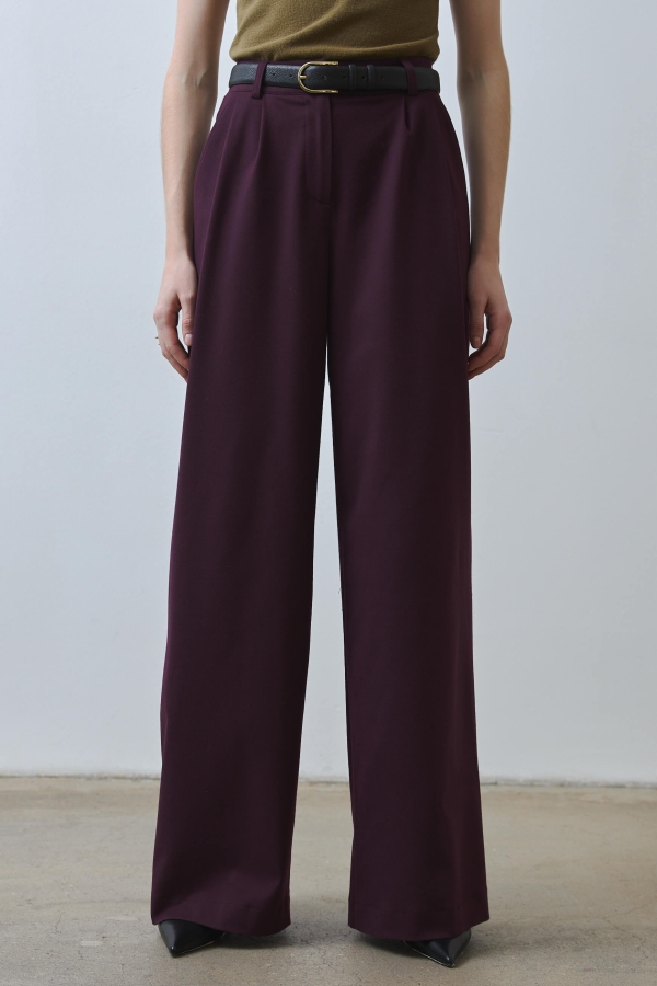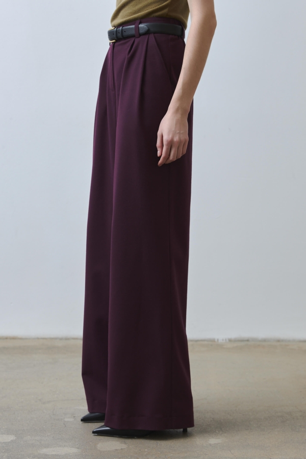 Брюки-палаццо из костюмного полотна. Модель свободного силуэта на притачном поясе со шлевками. По переду карманы, защипы и застёжка-гульфик. По спинке резинка для комфортной посадки.