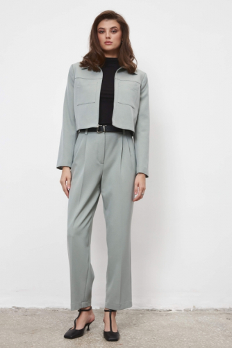 Комфортные брюки из костюмной поливискозы. Модель заужена к низу, на притачном поясе. По спинке эластичная резинка для комфортной посадки. По переду боковые карманы, стрелки. Застежка на молнию.