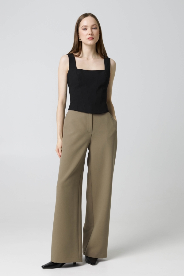 Брюки из костюмного полотна высокого качества. Модель прямого силуэта с притачным поясом со шлевками. По переду классические карманы. Средняя посадка. Застежка - гульфик.