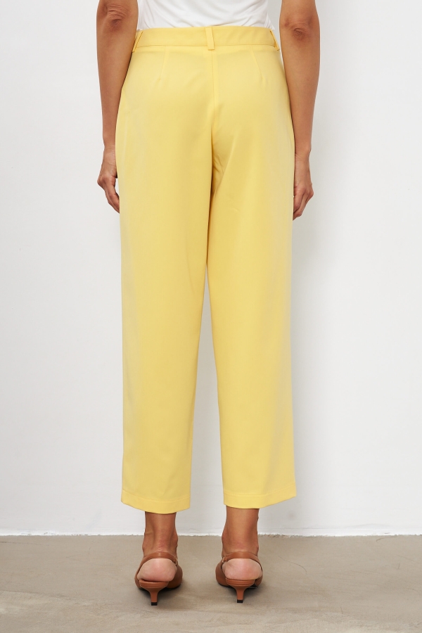 Классические брюки средней посадки. Модель укороченная, на средней посадке. Брюки прямые и слегка зауженные к низу. По переду гульфик, застежка на молнию и пуговицу.