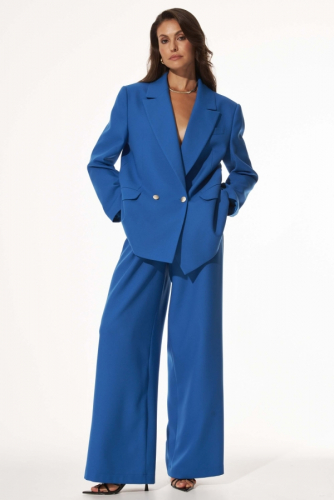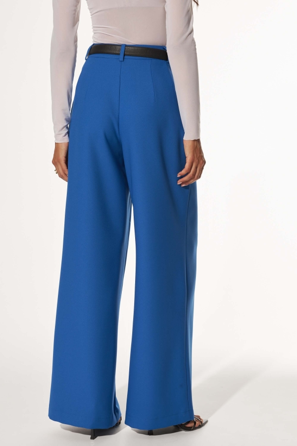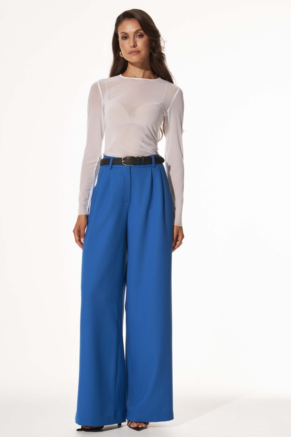 Брюки-палаццо из костюмной поливискозы. Прямые свободные брюки с высокой посадкой. Модель расширена к низу, со шлевками и боковыми карманами.