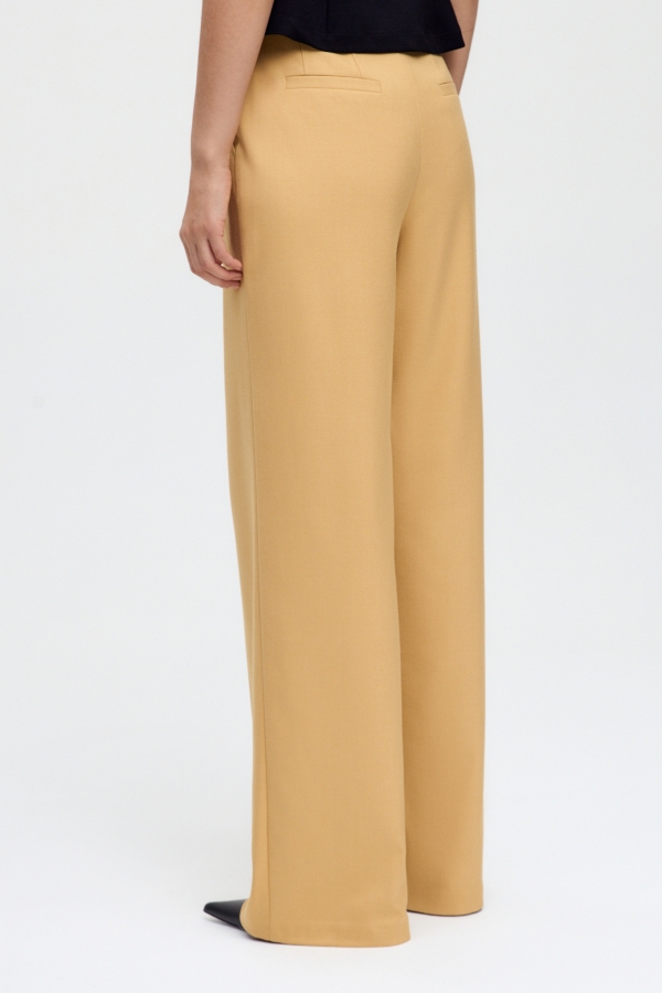Комфортные брюки из костюмной поливискозы в благородном оттенке. Прямые свободные брюки с высокой посадкой и стрелками. Боковые карманы, застежка-гульфик на молнию и пуговицу.