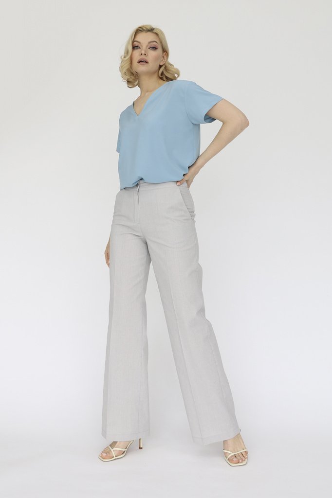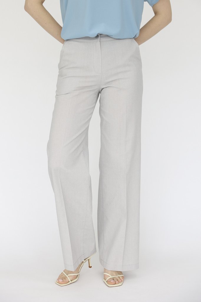 Брюки прямого кроя с притачным поясом. Боковые карманы в швах, вытачки на поясе сзади. Выполнены из смесового льна.