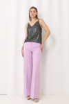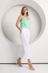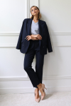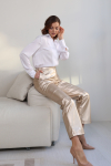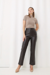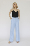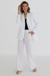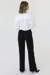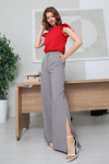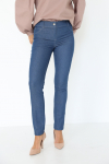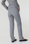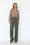 Брюки прямого кроя с притачным поясом. Боковые карманы в швах, вытачки на поясе сзади. Выполнены из плотной костюмной ткани, без подкладки.