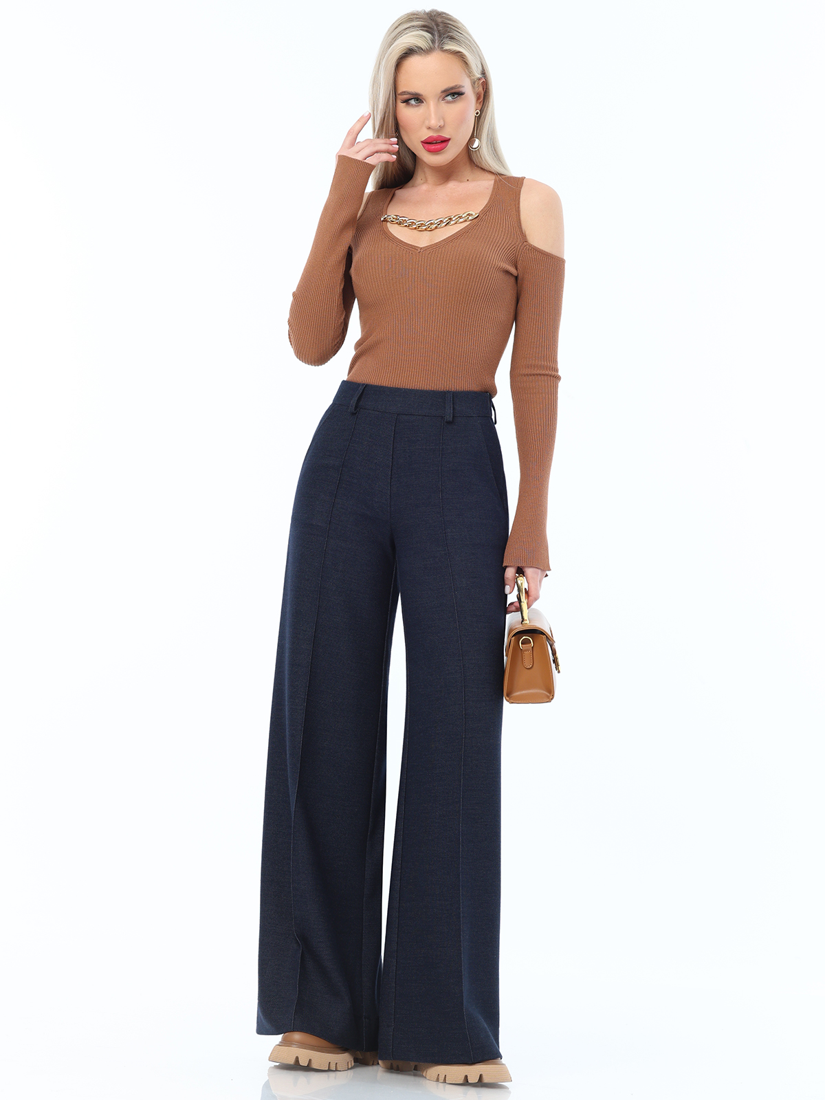 Брюки со стрелками — основа стильного гардероба, которая идеально впишется в повседневные, деловые или вечерние образы. Классический силуэт мягко подчеркивает женственные изгибы, не сковывает движений и стройнит. Стрелки на брюках не только задают деловой тон, но и визуально удлиняют ноги. Два боковых кармана незаметны, но функциональны. Брюки выполнены из качественной, приятной на ощупь ткани, которая не просвечивает и практически не мнется. Рекомендуется стирать изделие в деликатном режиме без отжима при температуре до 30 градусов.